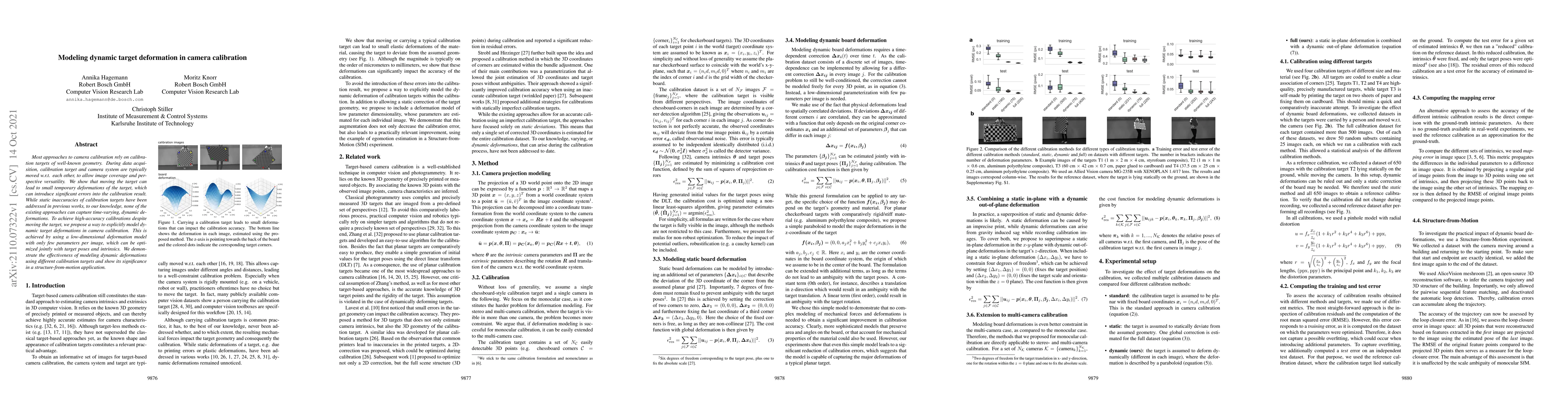 This paper proposes a method to model dynamic deformations of calibration targets during camera calibration, addressing the issue of temporary deformations caused by target movement. The approach uses a low-dimensional deformation model to optimize target deformations jointly with target poses and intrinsics, significantly improving calibration accuracy.