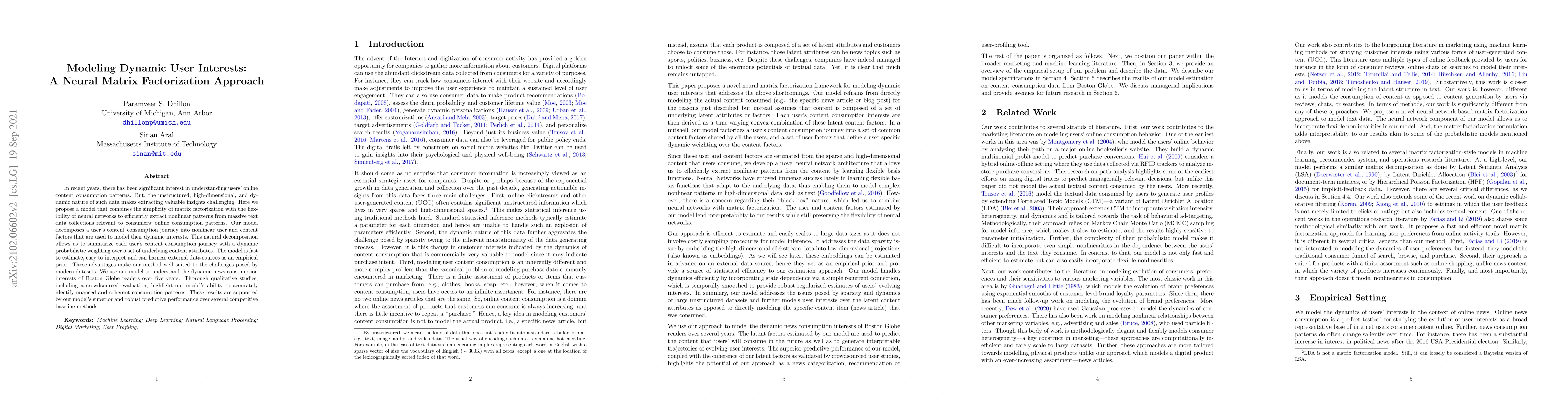 A new model combines matrix factorization with neural networks to extract nonlinear patterns from online content data, accurately identifying dynamic user interests over time. The approach is fast, easy to interpret, and can be improved with external data sources.