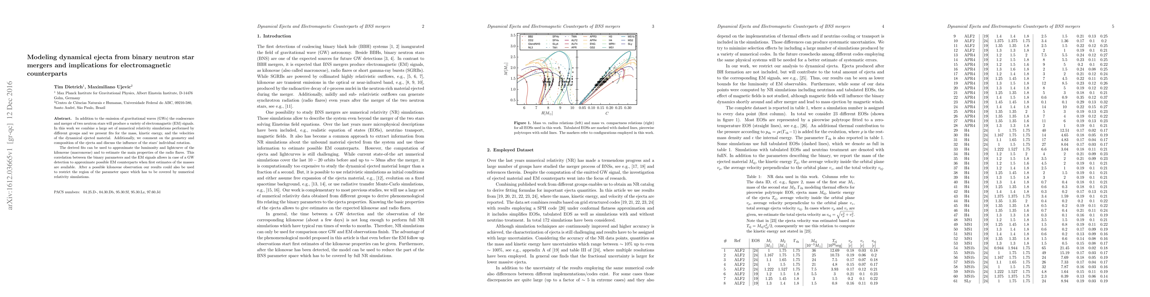 This paper models the dynamical ejecta from binary neutron star mergers, combining numerical relativity simulations to fit mass, kinetic energy, and velocities of ejected material. It discusses the implications for electromagnetic counterparts, including kilonovae and radio flares, and suggests using the derived fits to predict EM signals based on gravitational wave detections.