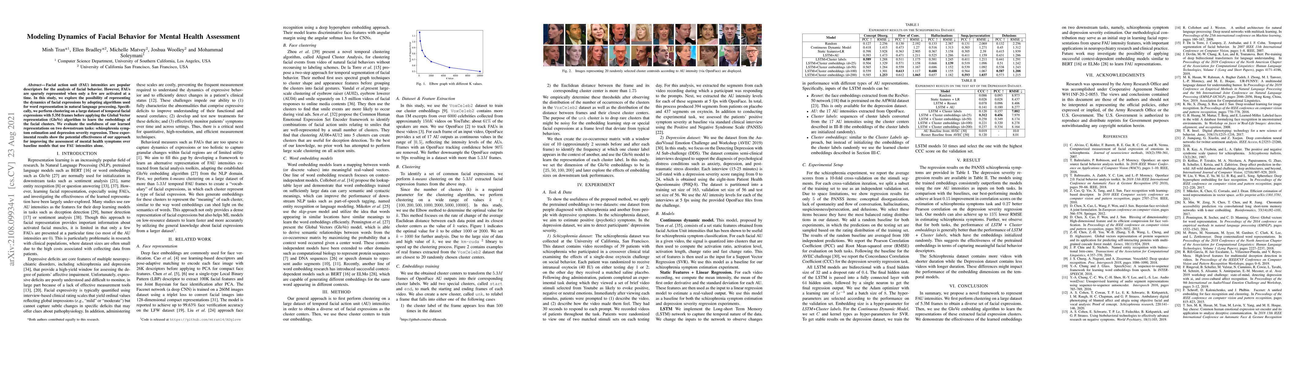 Researchers developed a new method to analyze facial expressions for mental health assessment, using word representation algorithms from natural language processing. This approach showed promise in improving symptom estimation and depression severity prediction compared to traditional methods.
