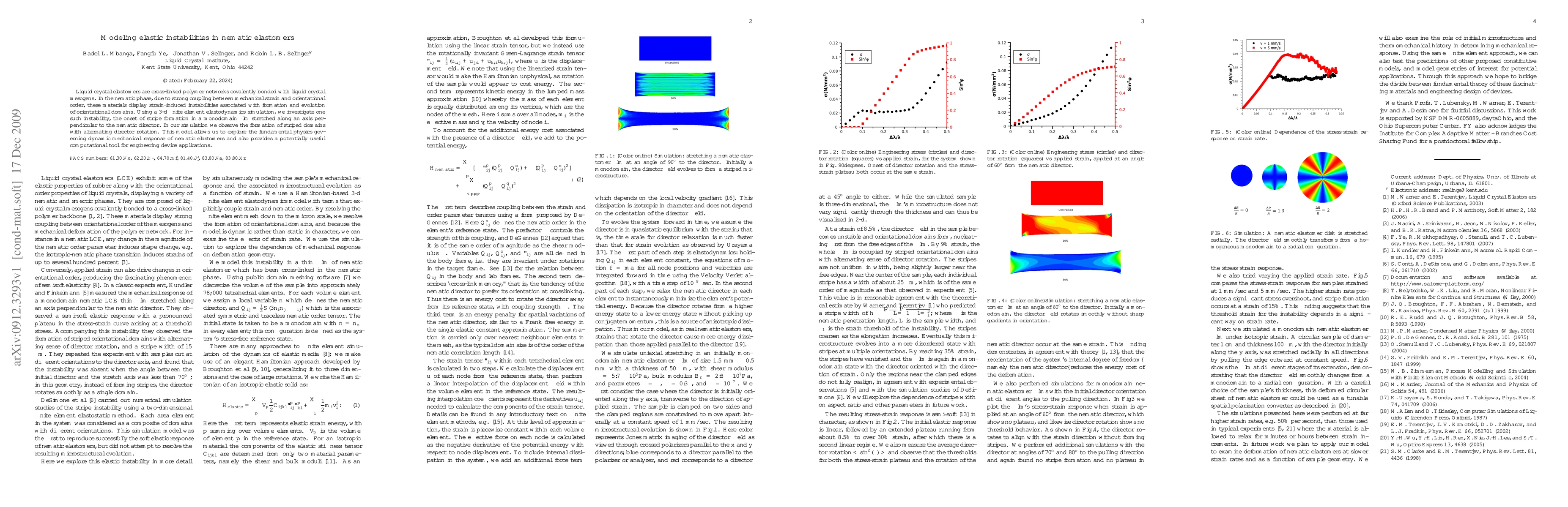 This paper investigates the elastic instabilities in nematic liquid crystal elastomers using 3-D finite element simulations, focusing on the formation of stripe domains under mechanical strain. The study reveals the underlying physics of dynamic mechanical response and offers a computational tool for device engineering.