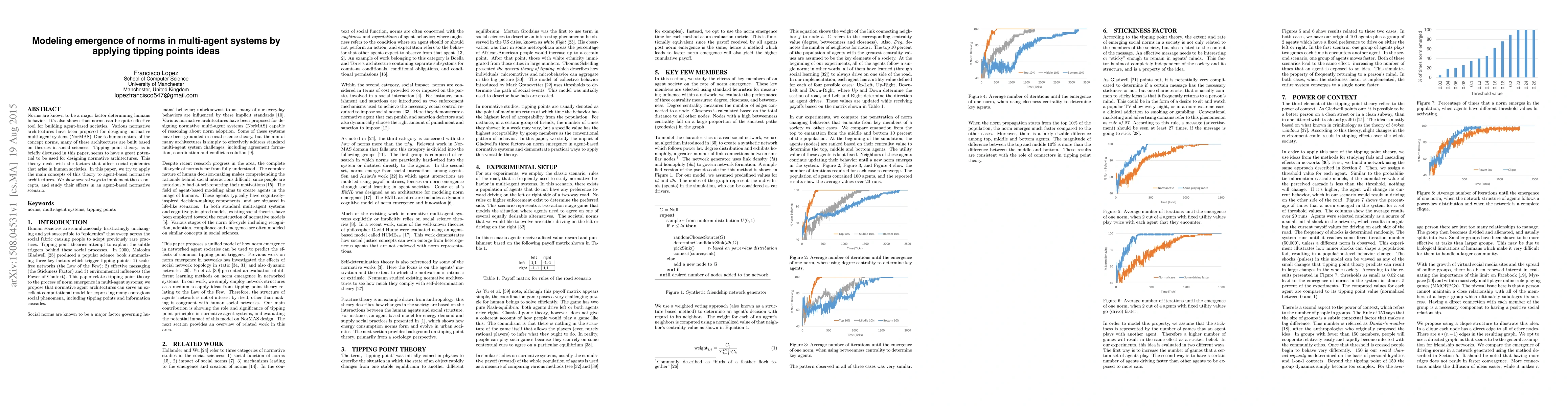 This paper explores applying tipping point theory to model the emergence of norms in multi-agent systems, proposing normative architectures for agent-based societies. It demonstrates various implementations of these concepts and evaluates their impact on normative behavior in agents.