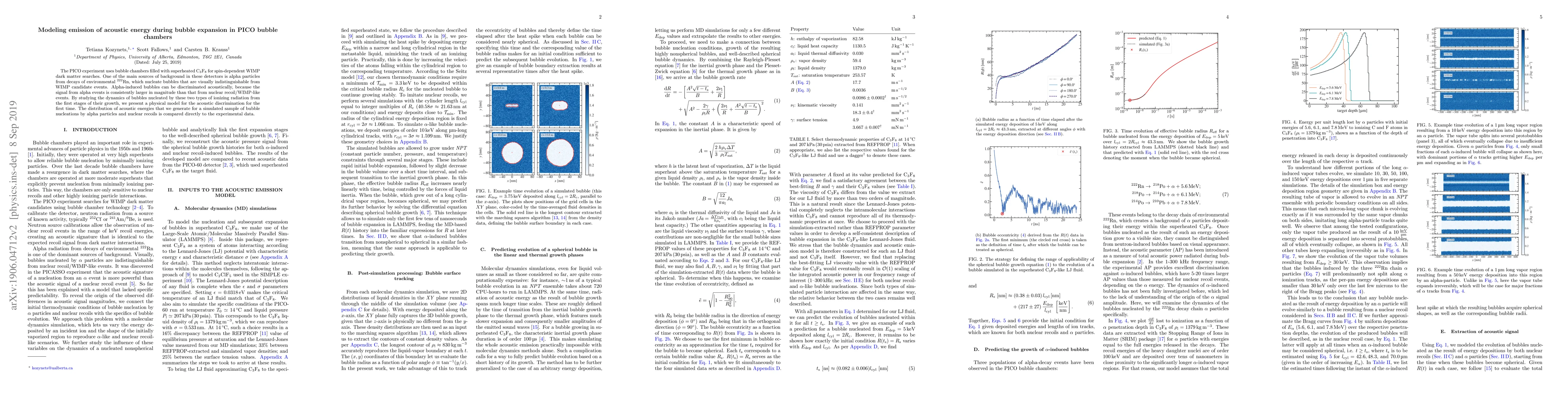 This paper develops a physical model to acoustically discriminate between alpha particle-induced bubbles and WIMP-like events in PICO bubble chambers, which are used for dark matter searches. The study compares the acoustic energy distribution from simulated alpha-induced and nuclear recoil bubbles to experimental data to enhance background reduction.