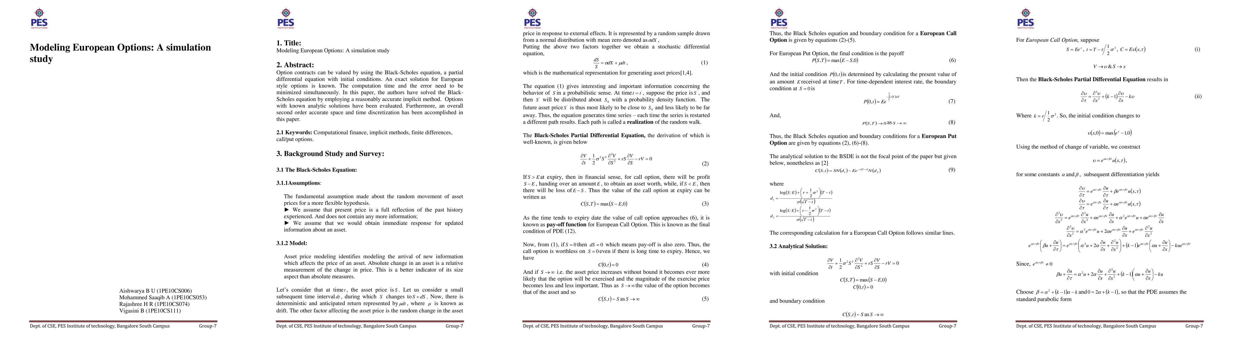 Option contracts can be valued by using the Black-Scholes equation, a partial differential equation with initial conditions. An exact solution for European style options is known. The computation time and the error need to be minimized simultaneously. In this paper, the authors have solved the Black-Scholes equation by employing a reasonably accurate implicit method. Options with known analytic solutions have been evaluated. Furthermore, an overall second order accurate space and time discretization has been accomplished in this paper.