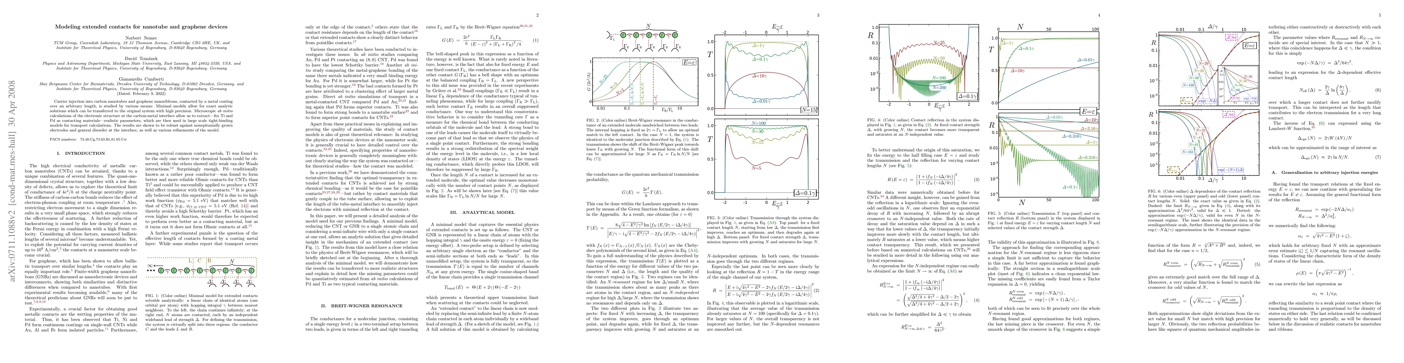 Carrier injection into carbon nanotubes and graphene nanoribbons, contacted by a metal coating over an arbitrary length, is studied by various means: Minimal models allow for exact analytic solutions which can be transferred to the original system with high precision. Microscopic ab initio calculations of the electronic structure at the carbon-metal interface allow us to extract -- for Ti and Pd as contacting materials -- realistic parameters, which are then used in large scale tight-binding models for transport calculations. The results are shown to be robust against nonepitaxially grown electrodes and general disorder at the interface, as well as various refinements of the model.