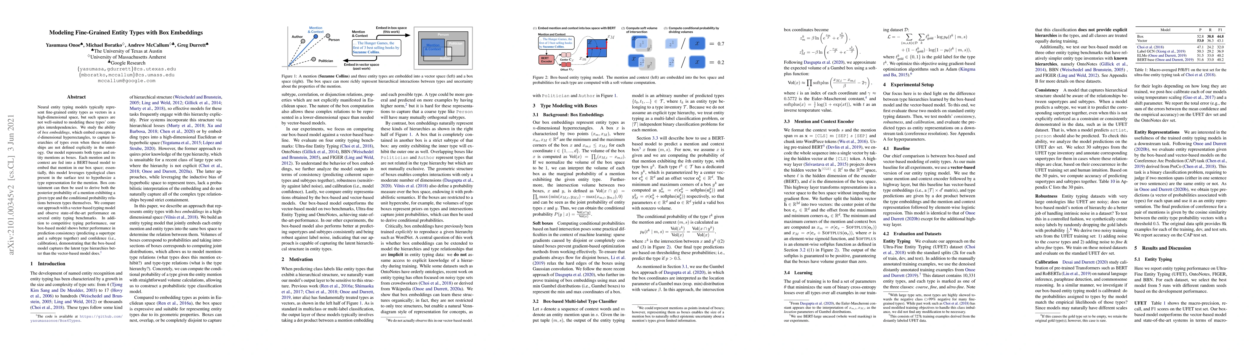 This paper proposes a box embedding model for fine-grained entity typing, representing entity types as d-dimensional hyperrectangles to better capture complex interdependencies. The model outperforms vector-based models in typing benchmarks, showing improved prediction consistency and calibration.