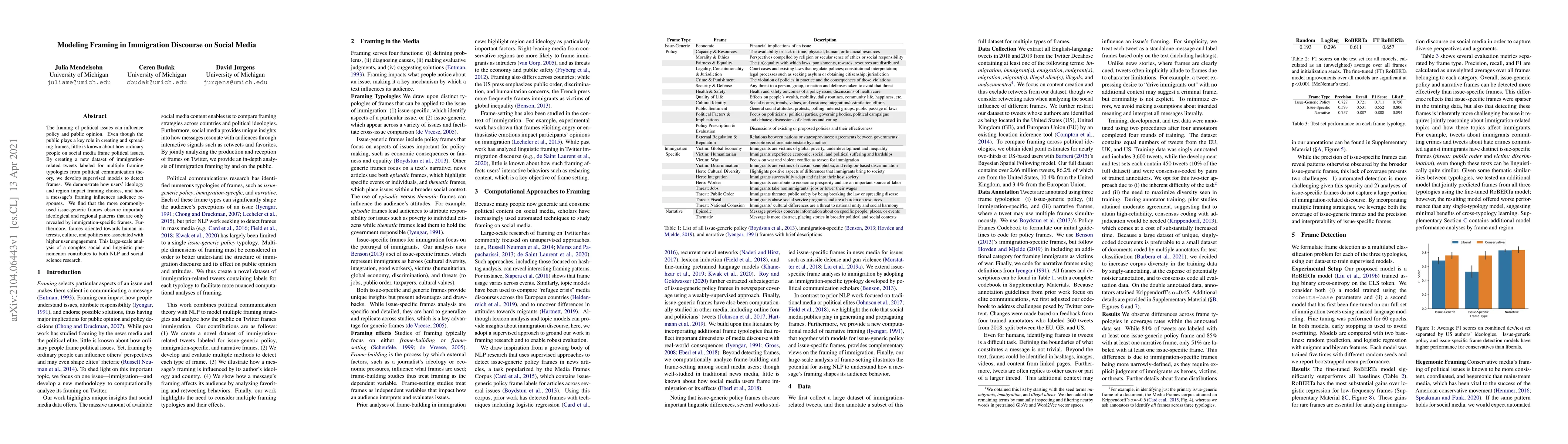 This study develops models to detect framing in social media immigration discourse, revealing how user ideology and region influence framing choices and how these frames affect audience engagement. The research highlights the importance of using immigration-specific frames to uncover nuanced ideological and regional patterns.