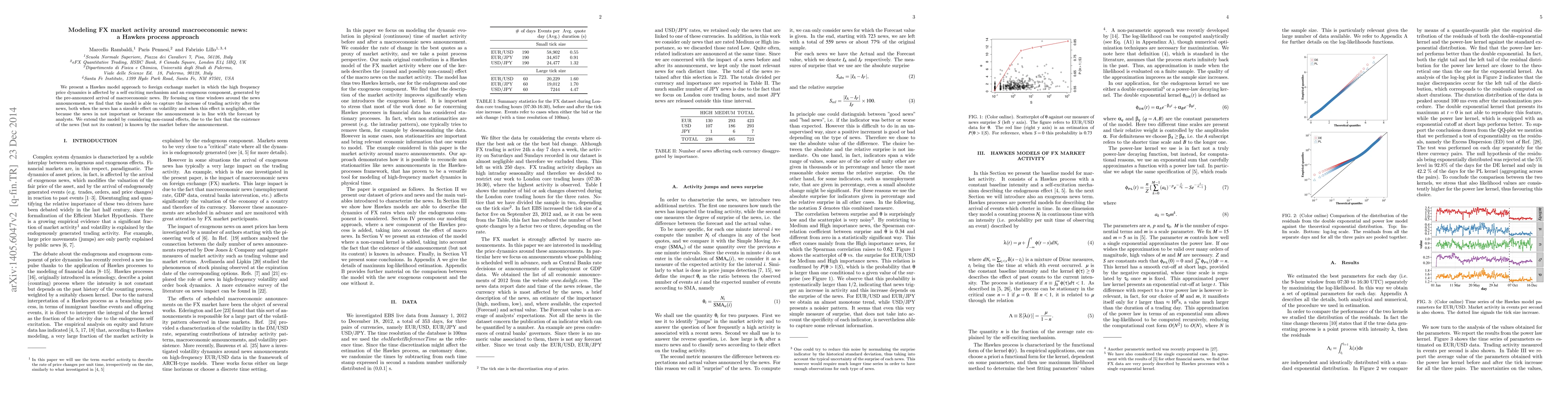 This paper employs a Hawkes process model to analyze foreign exchange market dynamics influenced by macroeconomic news announcements, capturing increased trading activity post-announcement. The model accounts for both self-exciting and exogenous effects, demonstrating its effectiveness regardless of the news's impact on volatility.
