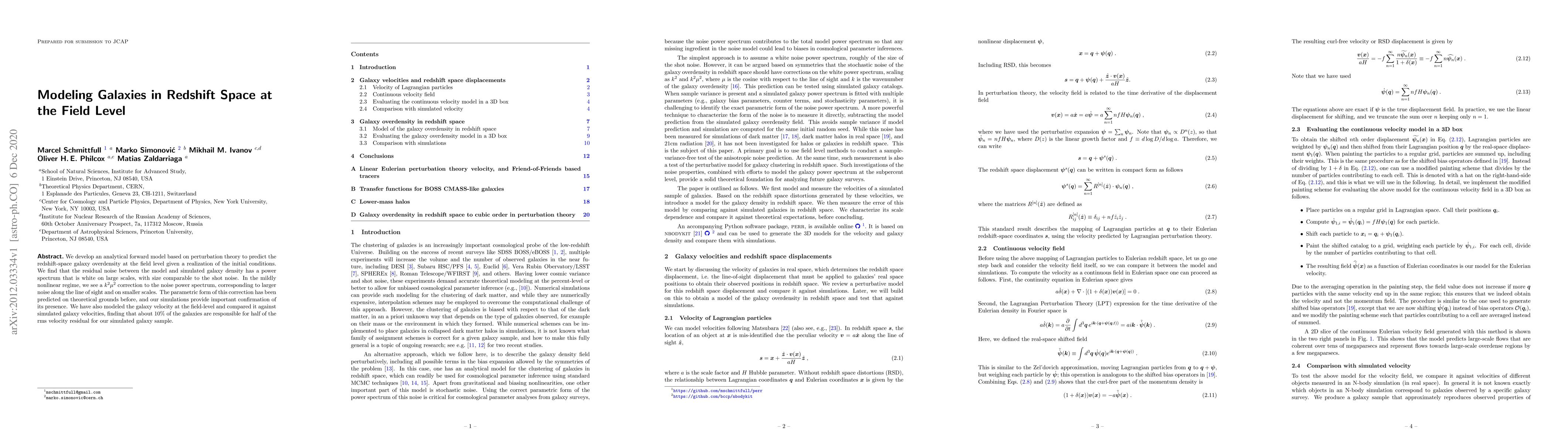 This paper develops an analytical forward model using perturbation theory to predict redshift-space galaxy overdensity based on initial conditions. The model confirms a theoretical $k^2\mu^2$ correction to the noise power spectrum, especially in the mildly nonlinear regime, and identifies that a small fraction of galaxies contribute significantly to velocity residuals.