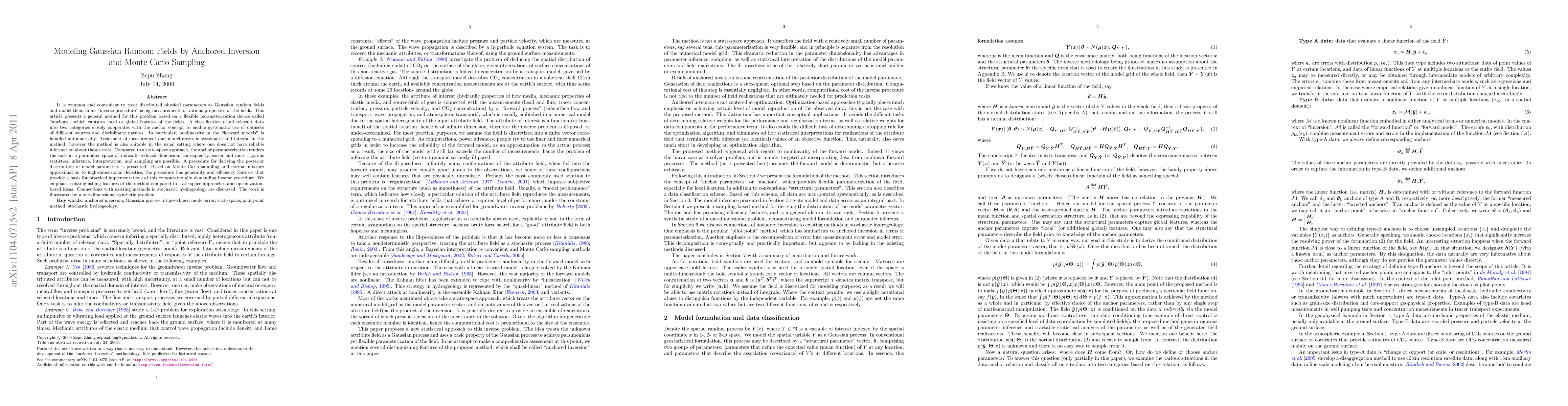 This paper introduces a novel method for modeling Gaussian random fields using anchored inversion and Monte Carlo sampling, which employs "anchors" to capture field features and simplifies the inverse problem. The method systematically handles measurement and model errors, offering efficient and general posterior distribution derivation suitable for practical applications.