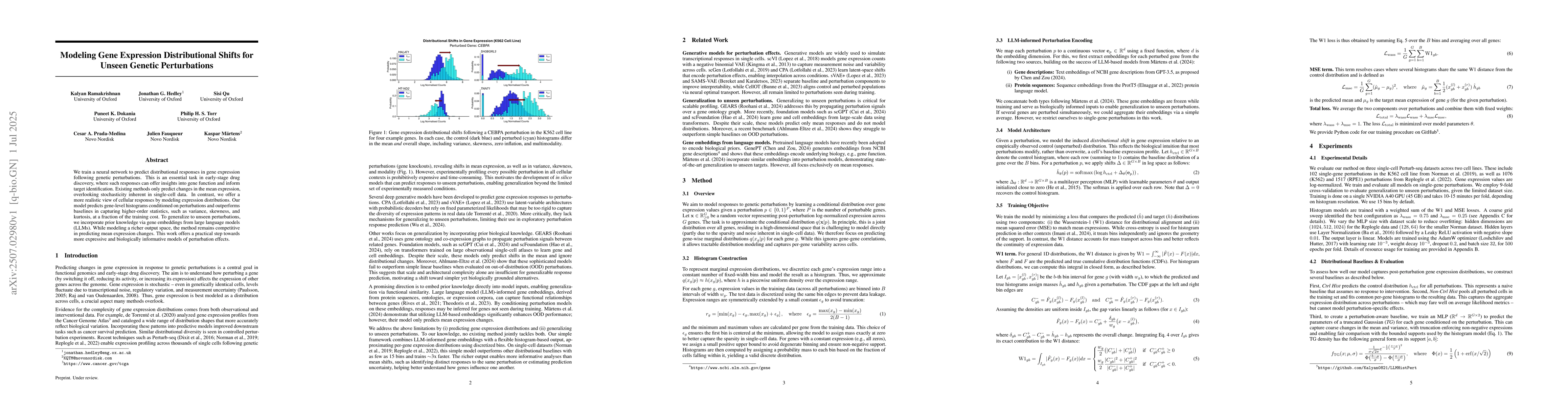 We train a neural network to predict distributional responses in gene expression following genetic perturbations. This is an essential task in early-stage drug discovery, where such responses can offer insights into gene function and inform target identification. Existing methods only predict changes in the mean expression, overlooking stochasticity inherent in single-cell data. In contrast, we offer a more realistic view of cellular responses by modeling expression distributions. Our model predicts gene-level histograms conditioned on perturbations and outperforms baselines in capturing higher-order statistics, such as variance, skewness, and kurtosis, at a fraction of the training cost. To generalize to unseen perturbations, we incorporate prior knowledge via gene embeddings from large language models (LLMs). While modeling a richer output space, the method remains competitive in predicting mean expression changes. This work offers a practical step towards more expressive and biologically informative models of perturbation effects.