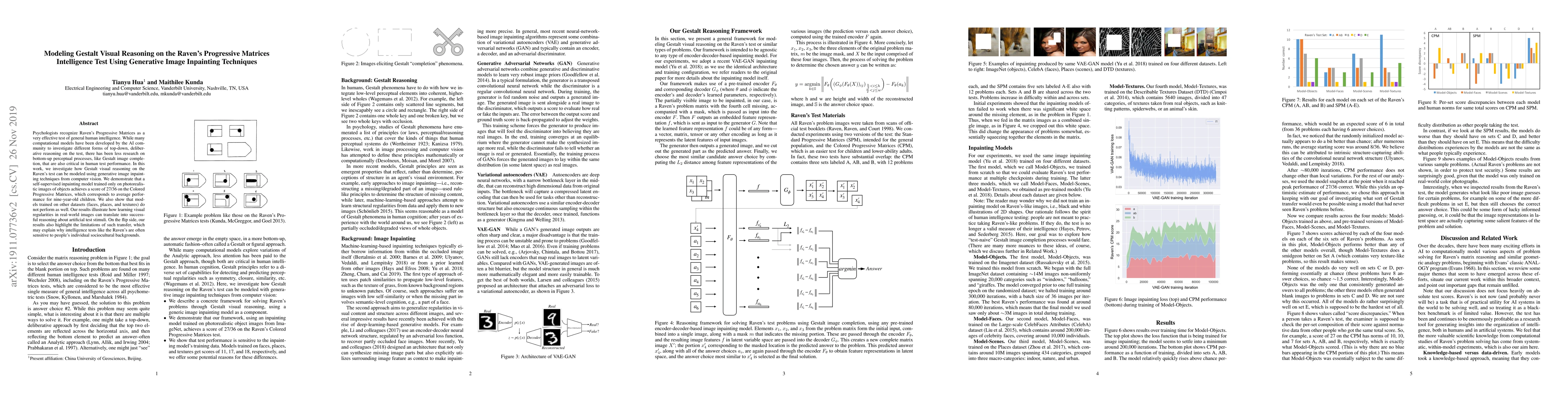 This paper explores modeling Gestalt visual reasoning on the Raven's Progressive Matrices using generative image inpainting techniques. A self-supervised inpainting model trained on photorealistic images achieved average performance on the test, highlighting the role of perceptual processes in intelligence tests.