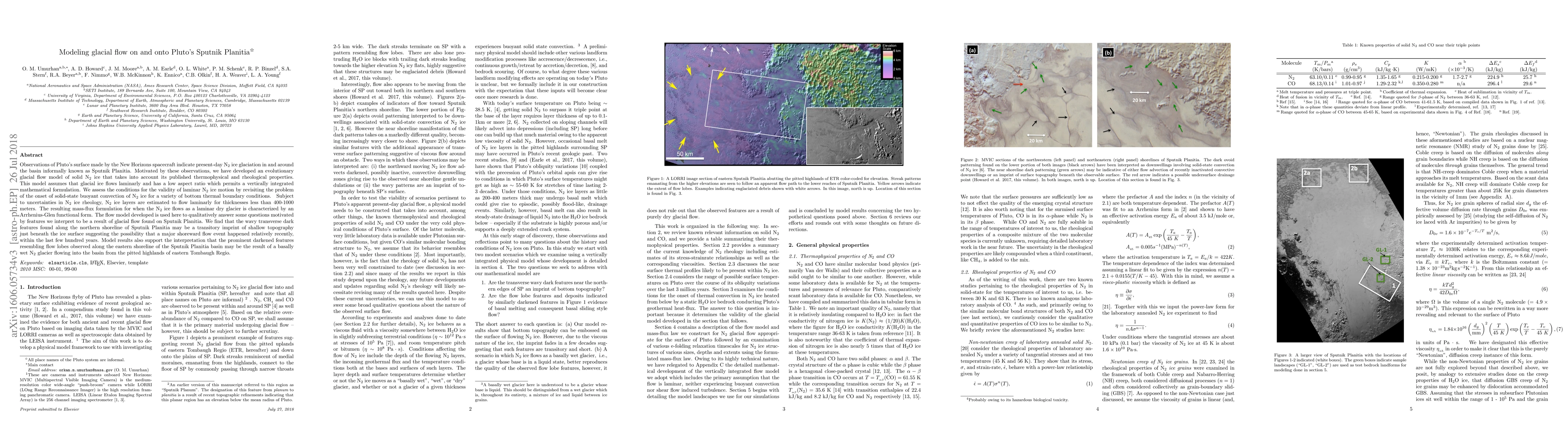 This paper develops a glacial flow model for nitrogen ice on Pluto's Sputnik Planitia, showing that laminar flow is likely for ice layers under 1000 meters thick. The model suggests recent flow events may have created the observed dark features on the basin's shorelines, indicating possible wet nitrogen glacial ice movement from the highlands.