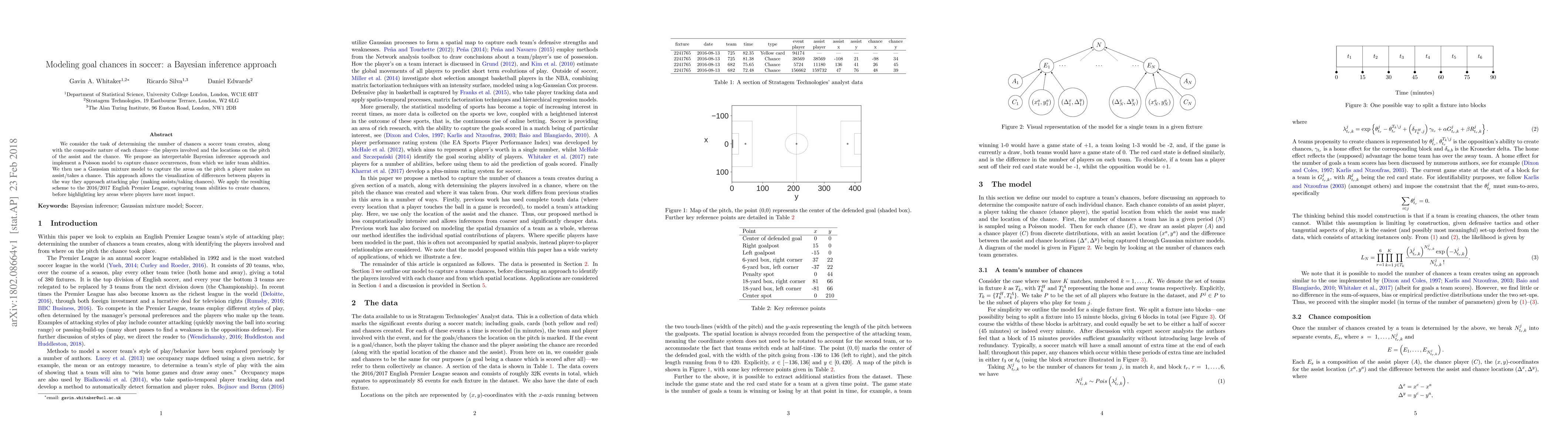 We consider the task of determining the number of chances a soccer team creates, along with the composite nature of each chance-the players involved and the locations on the pitch of the assist and the chance. We propose an interpretable Bayesian inference approach and implement a Poisson model to capture chance occurrences, from which we infer team abilities. We then use a Gaussian mixture model to capture the areas on the pitch a player makes an assist/takes a chance. This approach allows the visualization of differences between players in the way they approach attacking play (making assists/taking chances). We apply the resulting scheme to the 2016/2017 English Premier League, capturing team abilities to create chances, before highlighting key areas where players have most impact.