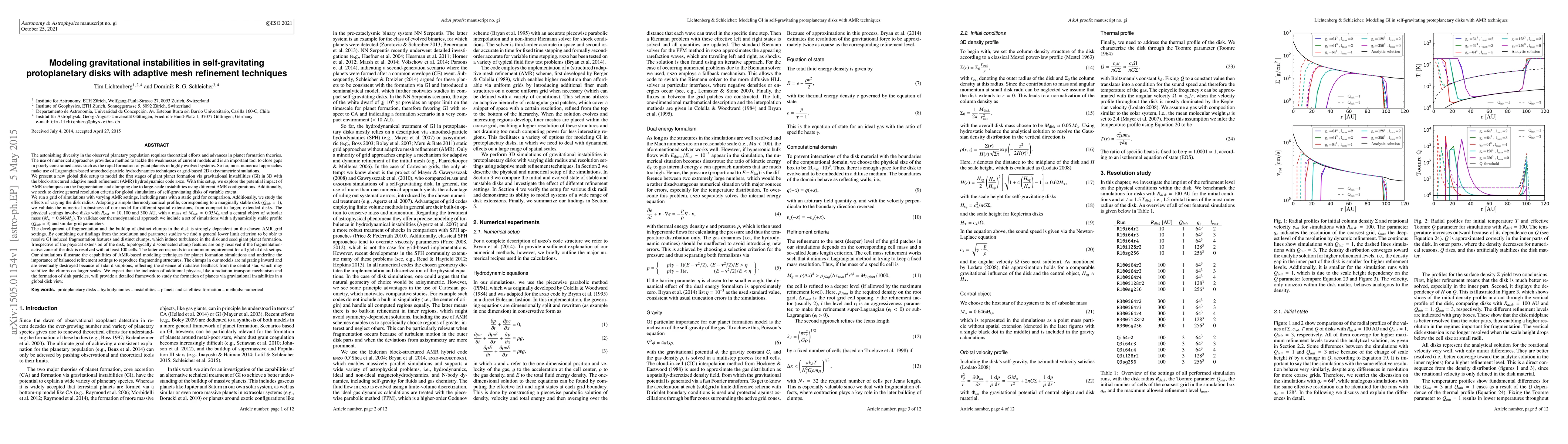 The paper presents a detailed analysis of using AMR techniques to model gravitational instabilities in self-gravitating protoplanetary disks, providing resolution criteria for capturing fragmentation and clumping features.
