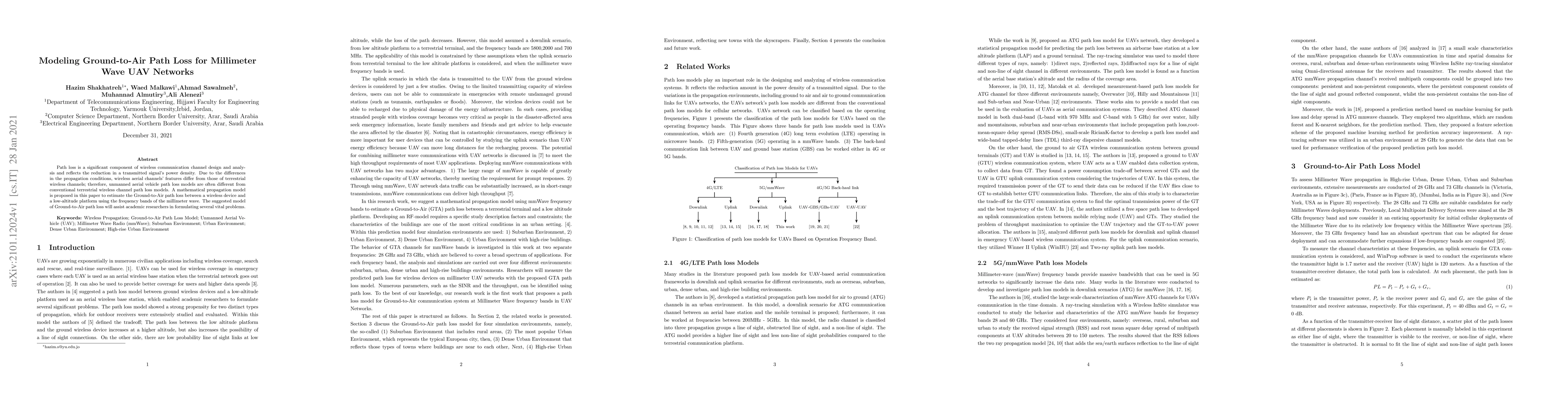 Path loss is a significant component of wireless communication channel design and analysis and reflects the reduction in a transmitted signal's power density. Due to the differences in the propagation conditions, wireless aerial channels' features differ from those of terrestrial wireless channels; therefore, unmanned aerial vehicle path loss models are often different from conventional terrestrial wireless channel path loss models. A mathematical propagation model is proposed in this paper to estimate the Ground-to-Air path loss between a wireless device and a low-altitude platform using the frequency bands of the millimeter wave. The suggested model of Ground-to-Air path loss will assist academic researchers in formulating several vital problems.