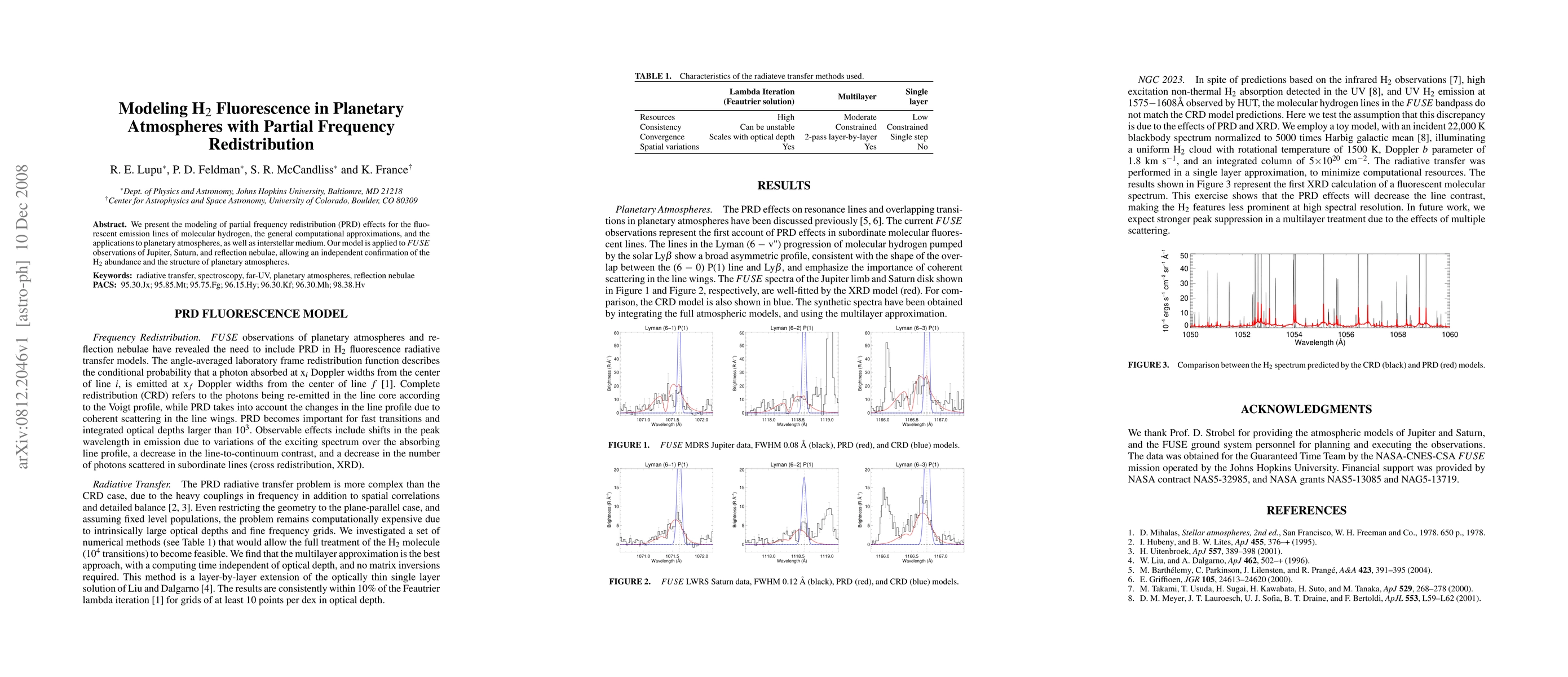 Researchers developed a model to study H2 fluorescence in planetary atmospheres, confirming H2 abundance and atmosphere structure with FUSE observations of Jupiter, Saturn, and reflection nebulae.