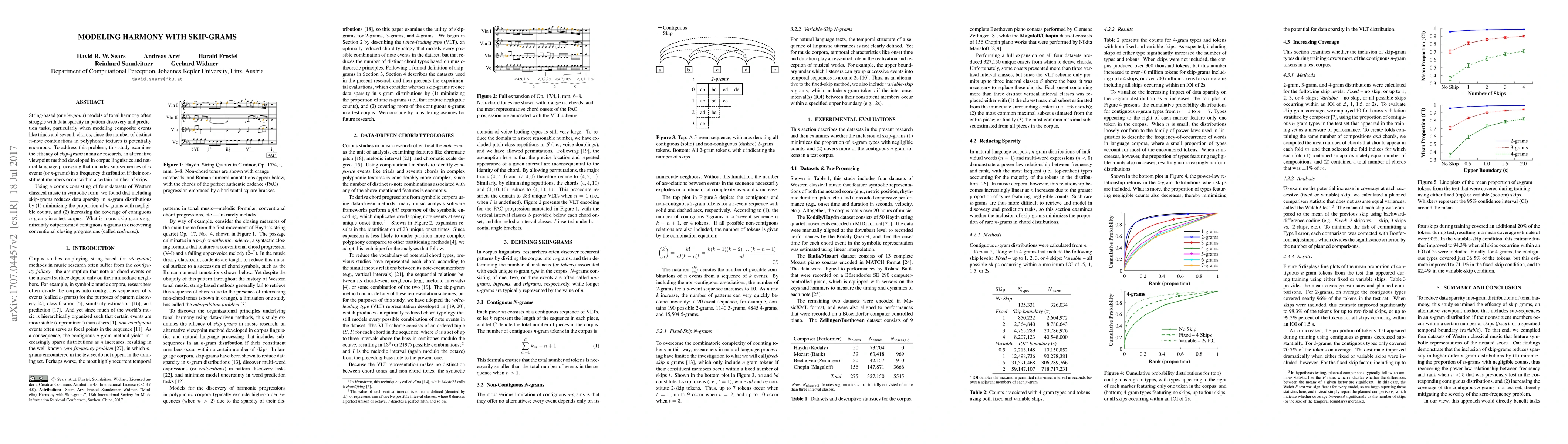 String-based (or viewpoint) models of tonal harmony often struggle with data sparsity in pattern discovery and prediction tasks, particularly when modeling composite events like triads and seventh chords, since the number of distinct n-note combinations in polyphonic textures is potentially enormous. To address this problem, this study examines the efficacy of skip-grams in music research, an alternative viewpoint method developed in corpus linguistics and natural language processing that includes sub-sequences of n events (or n-grams) in a frequency distribution if their constituent members occur within a certain number of skips. Using a corpus consisting of four datasets of Western classical music in symbolic form, we found that including skip-grams reduces data sparsity in n-gram distributions by (1) minimizing the proportion of n-grams with negligible counts, and (2) increasing the coverage of contiguous n-grams in a test corpus. What is more, skip-grams significantly outperformed contiguous n-grams in discovering conventional closing progressions (called cadences).