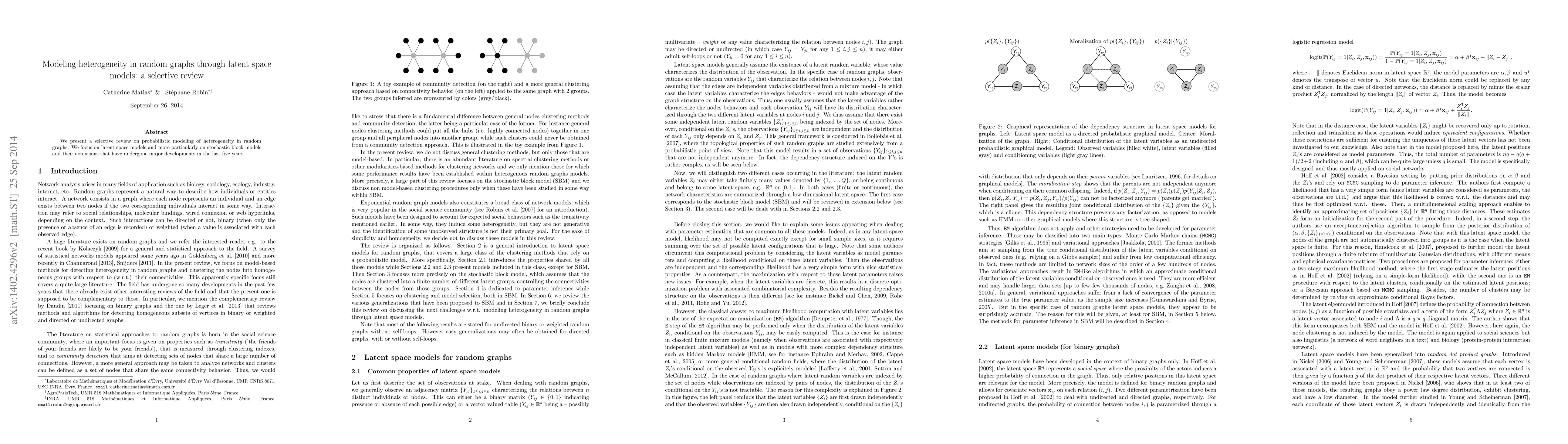 This paper reviews recent advancements in latent space models, particularly stochastic block models, for modeling heterogeneity in random graphs, highlighting significant developments over the past five years. The focus is on understanding the underlying structures and dynamics in complex networks.