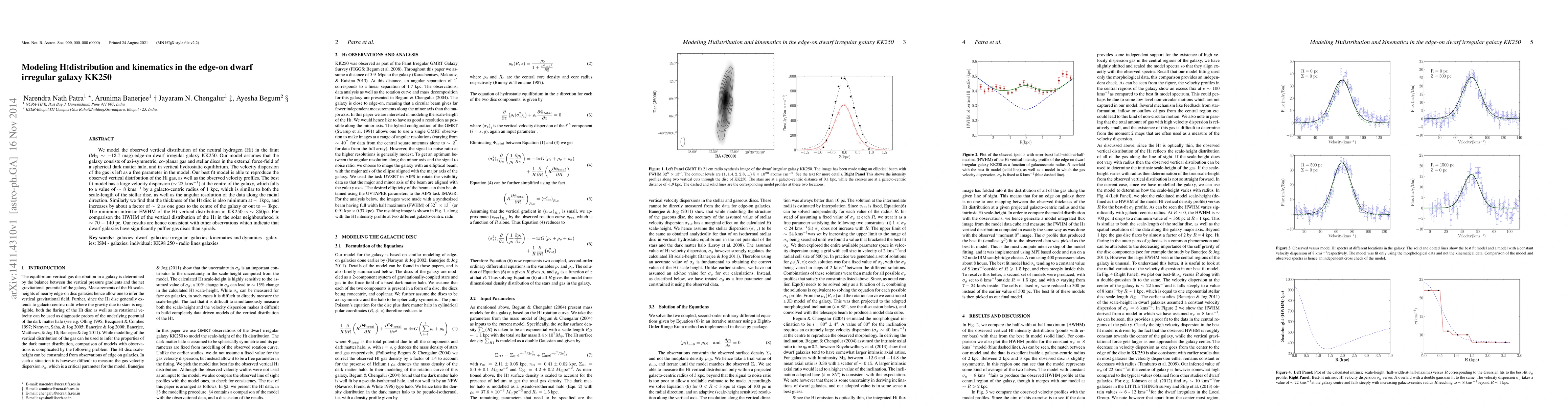 We model the observed vertical distribution of the neutral hydrogen (HI) in the faint (M_B ~ -13.7 mag) edge-on dwarf irregular galaxy KK250. Our model assumes that the galaxy consists of axi-symmetric, co-planar gas and stellar discs in the external force-field of a spherical dark matter halo, and in vertical hydrostatic equilibrium. The velocity dispersion of the gas is left as a free parameter in the model. Our best fit model is able to reproduce the observed vertical distribution of the HI gas, as well as the observed velocity profiles. The best fit model has a large velocity dispersion (~ 22 km/s) at the centre of the galaxy, which falls to a value of ~ 8 km/s by a galacto-centric radius of ~ 1 kpc, which is similar to both the scale-length of the stellar disc, as well as the angular resolution of the data along the radial direction. Similarly we find that the thickness of the HI disc is also minimum at ~ 1 kpc, and increases by about a factor of ~ 2 as one goes to the centre of the galaxy or out to ~ 3 kpc. The minimum intrinsic HWHM of the HI vertical distribution in KK250 is ~ 350 pc. For comparison the HWHM of the vertical distribution of the HI in the solar neighbourhood is ~ 70-140 pc. Our results are hence consistent with other observations which indicate that dwarf galaxies have significantly puffier gas discs than spirals.