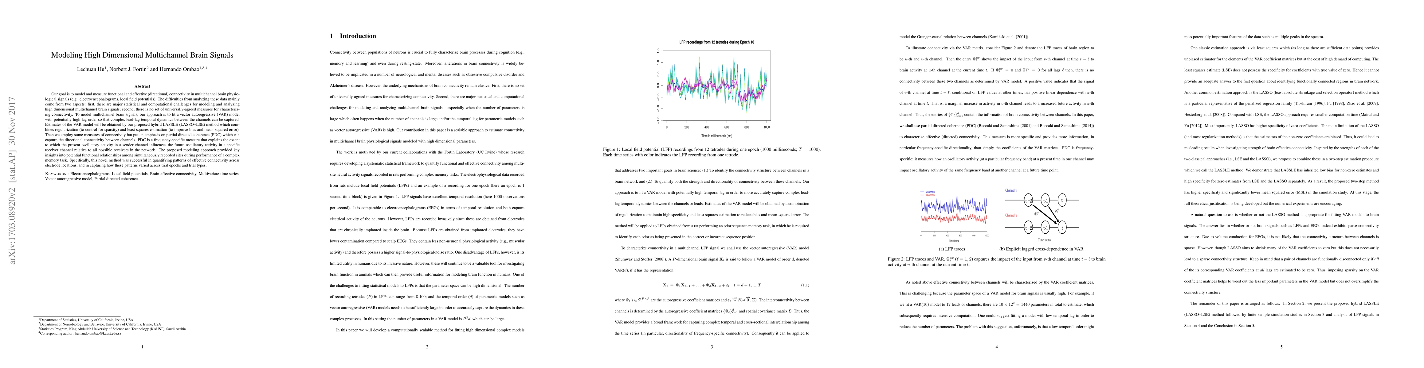 This paper proposes a vector autoregressive (VAR) model with a hybrid LASSLE (LASSO+LSE) method to analyze high-dimensional multichannel brain signals, focusing on partial directed coherence (PDC) for directional connectivity. The approach successfully captures complex temporal dynamics and effective connectivity patterns during complex memory tasks.