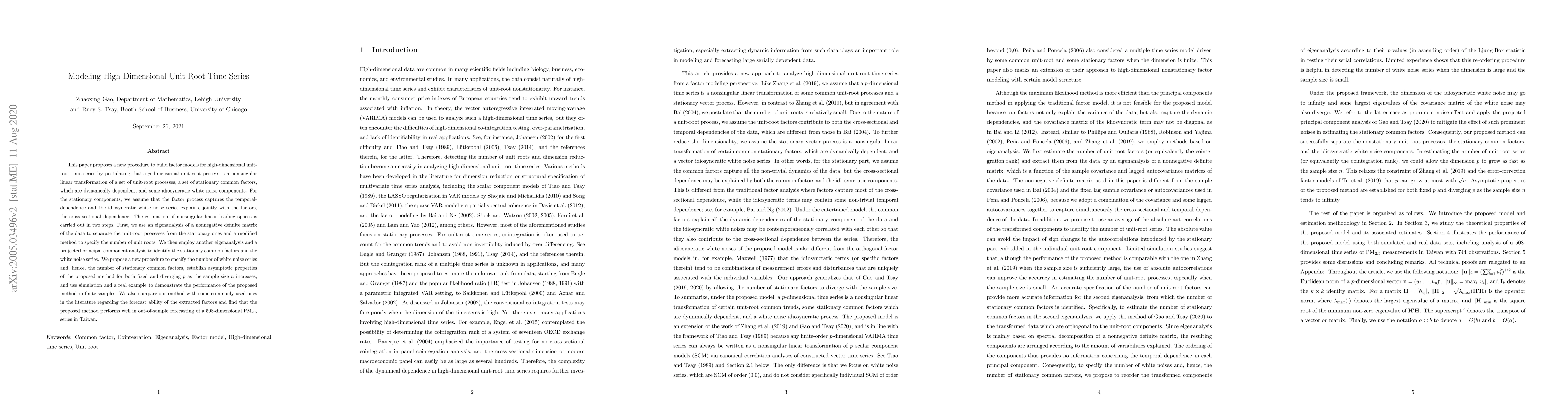 This paper introduces a new method for factor modeling of high-dimensional unit-root time series, distinguishing unit-root processes from stationary components through eigenanalysis and principal component analysis. The proposed method shows strong performance in forecasting, particularly for a 508-dimensional PM$_{2.5}$ series in Taiwan.