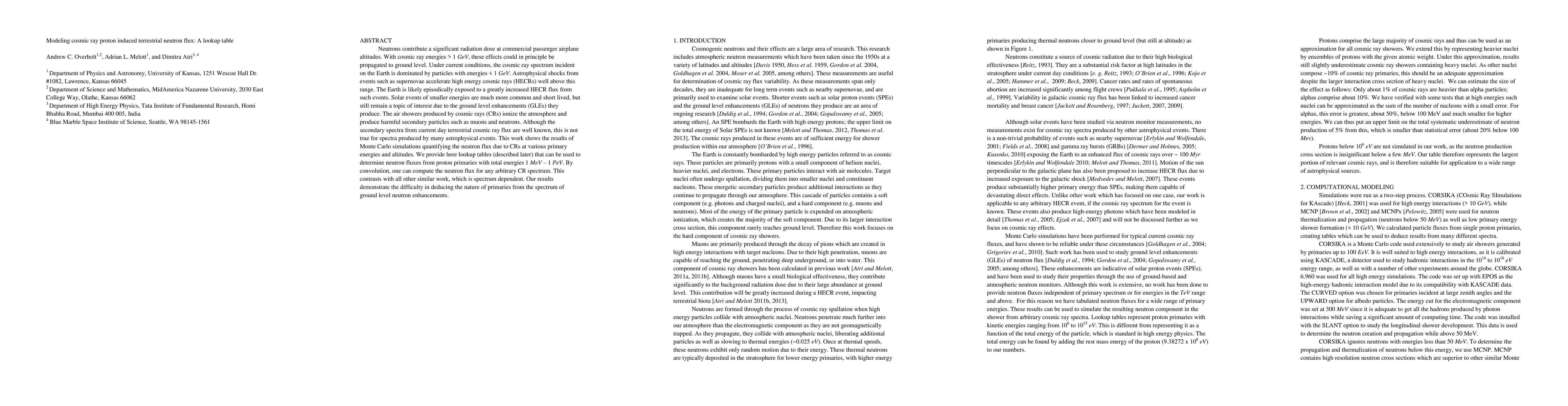 The research used a combination of Monte Carlo simulations and atmospheric measurements to study the effects of cosmic rays on the Earth's atmosphere.