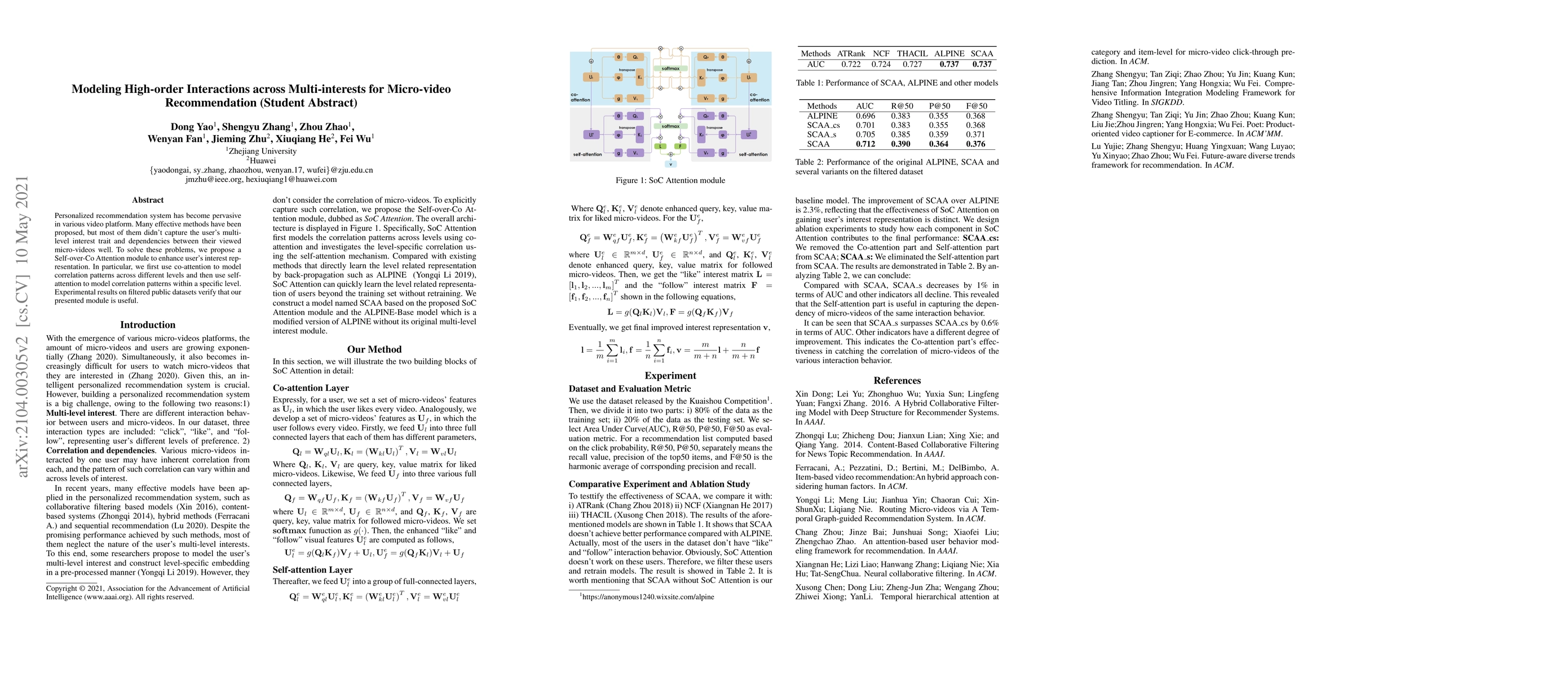 A new recommendation system model enhances user interest representation using a Self-over-Co Attention module to capture multi-level interactions across different interests. Experimental results show the proposed module is useful in personalized video recommendations.