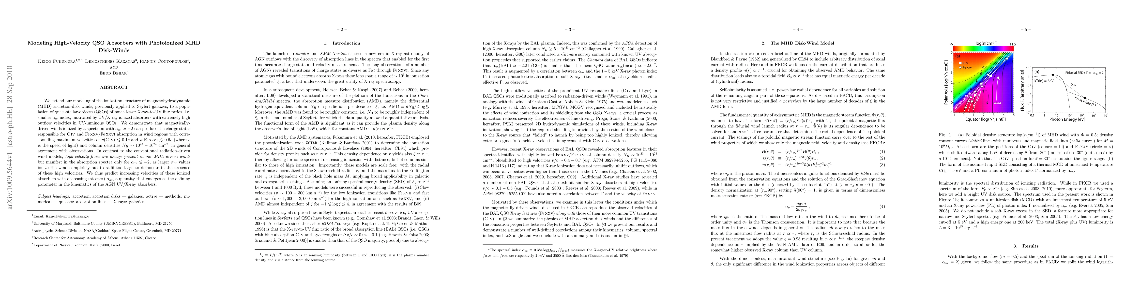 This paper models high-velocity QSO absorbers using photoionized MHD disk-winds, showing that magnetically-driven winds with $\alpha_{\rm ox} \simeq -2$ can produce the observed charge states for \civ and \fexxv/\fexxvi absorption. Unlike radiation-driven models, high-velocity flows are inherent in MHD-driven winds, manifesting in spectra only for $\alpha_{\rm ox} \lsim -2$.