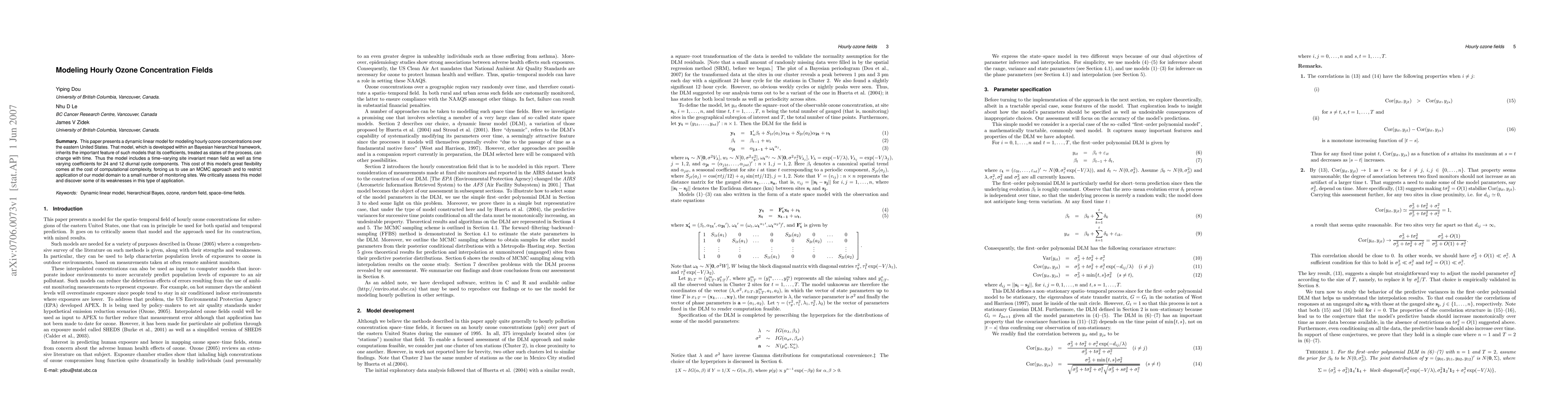 Researchers developed a dynamic linear model to predict hourly ozone concentrations in the eastern US, incorporating time-varying coefficients for daily cycles and site-specific factors. The flexible model offers accurate predictions but comes with increased computational complexity.