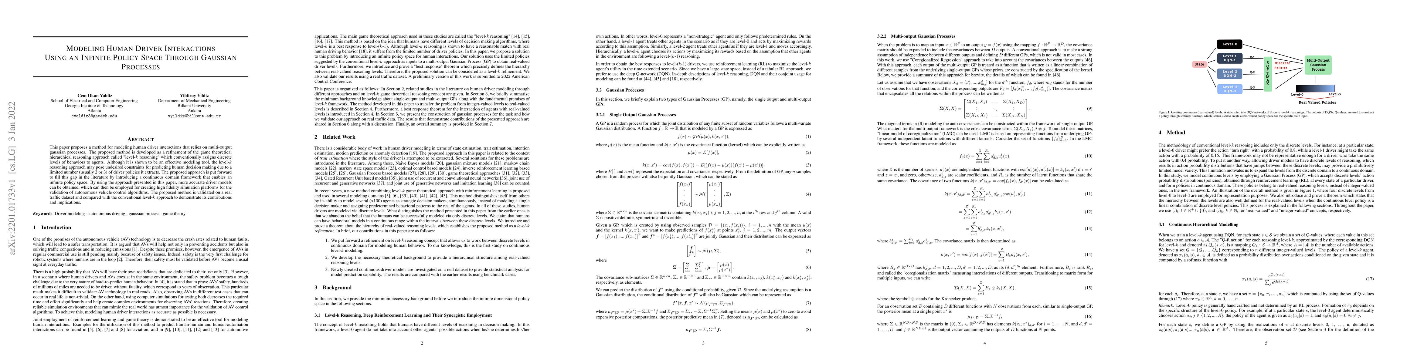 This paper introduces a method using multi-output Gaussian processes to model human driver interactions with an infinite policy space, refining the level-k reasoning approach. It demonstrates improved accuracy over conventional methods and validates the approach using real traffic data.