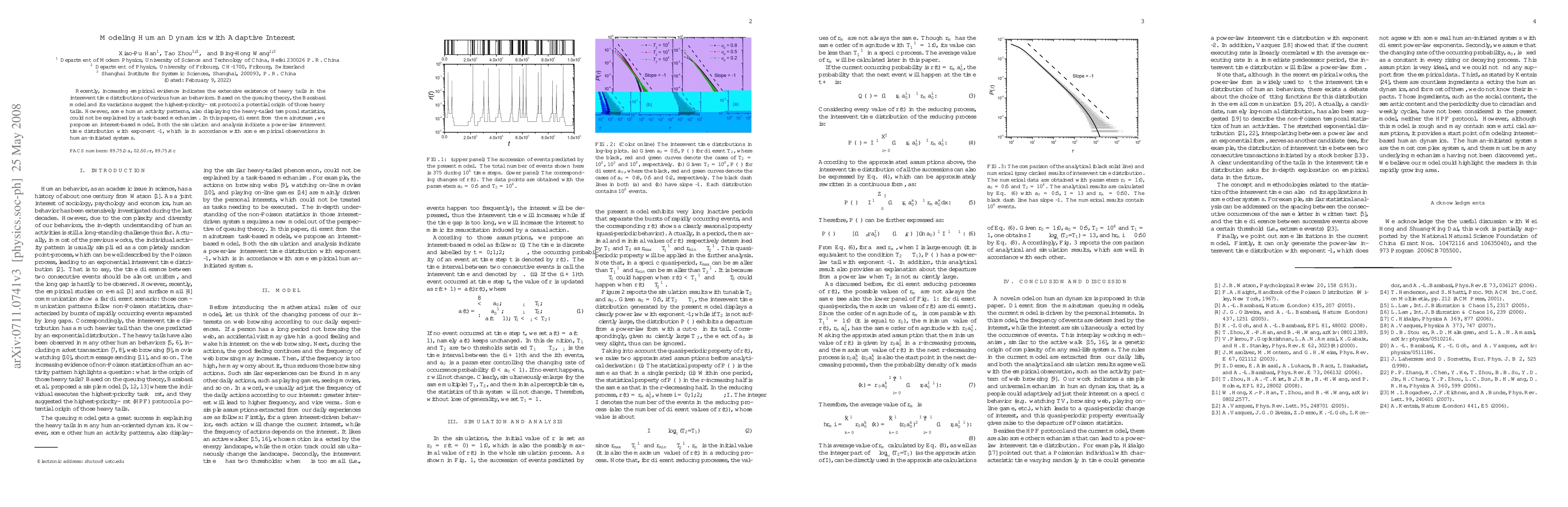 This paper proposes an interest-based model to explain heavy-tailed interevent time distributions in human behaviors, diverging from task-based mechanisms. Simulation and analysis show a power-law distribution with an exponent of -1, aligning with empirical observations in human-initiated systems.