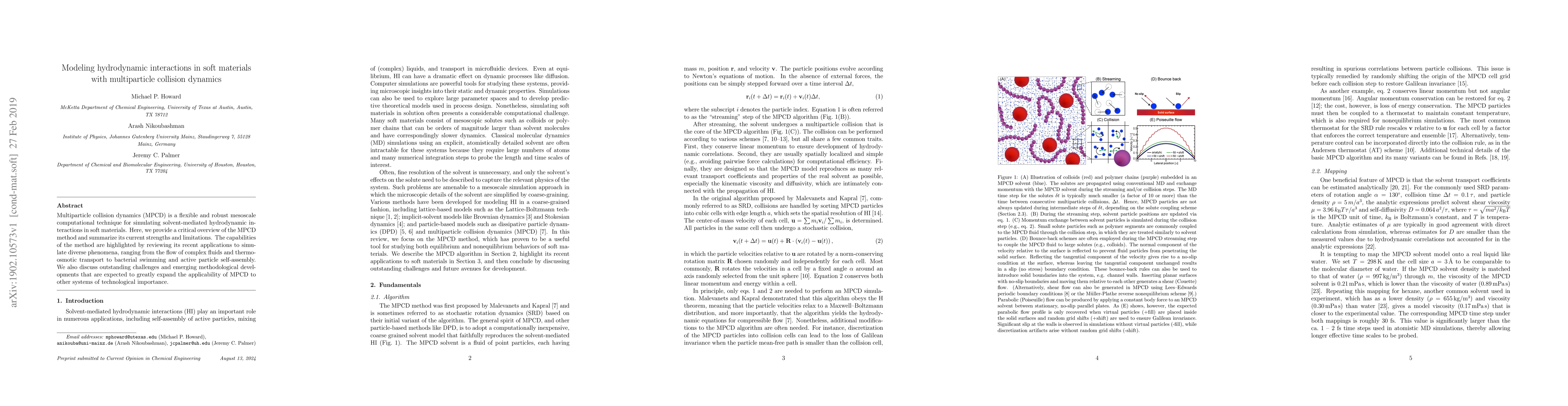 Multiparticle collision dynamics (MPCD) simulates hydrodynamic interactions in soft materials with high flexibility and accuracy. Its capabilities have been expanded to simulate various phenomena, including complex fluid flow and bacterial swimming, but outstanding challenges remain.