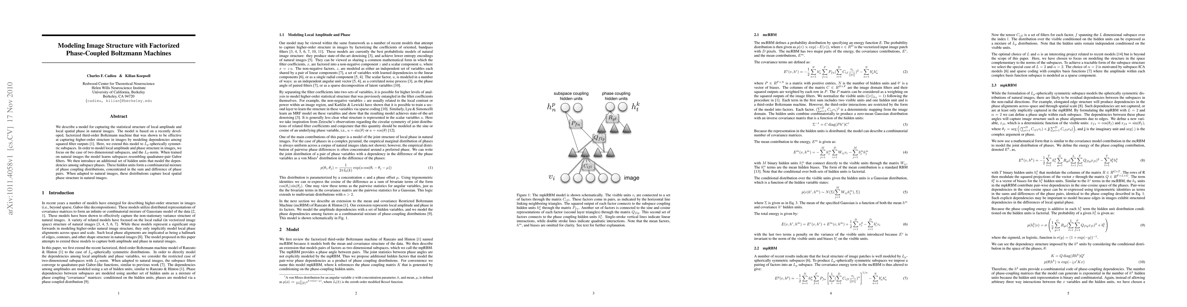 We describe a model for capturing the statistical structure of local amplitude and local spatial phase in natural images. The model is based on a recently developed, factorized third-order Boltzmann machine that was shown to be effective at capturing higher-order structure in images by modeling dependencies among squared filter outputs (Ranzato and Hinton, 2010). Here, we extend this model to $L_p$-spherically symmetric subspaces. In order to model local amplitude and phase structure in images, we focus on the case of two dimensional subspaces, and the $L_2$-norm. When trained on natural images the model learns subspaces resembling quadrature-pair Gabor filters. We then introduce an additional set of hidden units that model the dependencies among subspace phases. These hidden units form a combinatorial mixture of phase coupling distributions, concentrated in the sum and difference of phase pairs. When adapted to natural images, these distributions capture local spatial phase structure in natural images.