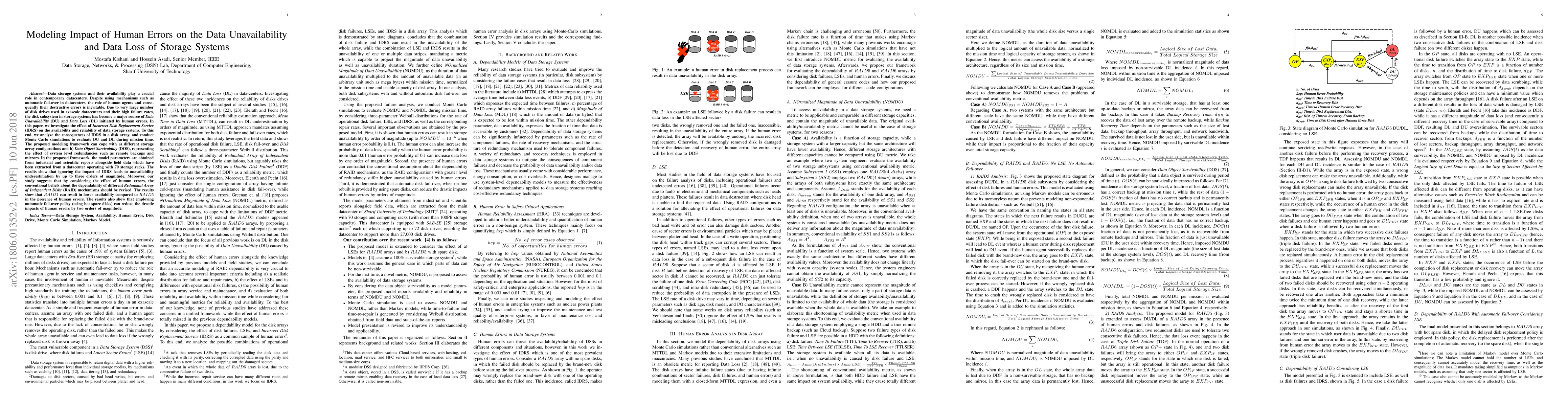 This paper investigates the impact of human errors, specifically Incorrect Disk Replacement Service (IDRS), on the availability and reliability of data storage systems. The study reveals that IDRS can significantly underestimate data unavailability and lead to data loss, suggesting that conventional views on RAID mechanisms should be revised, with RAID1 potentially offering lower availability than RAID5 due to human errors.