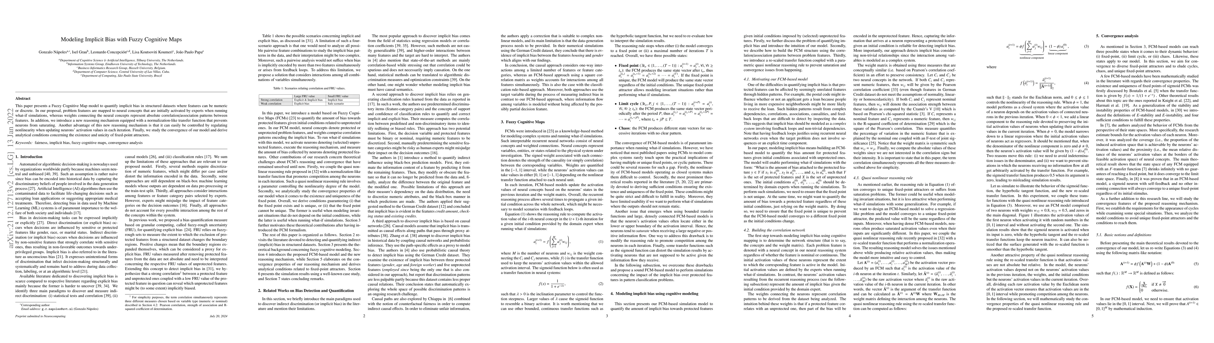 The paper presents a FCM-based model with a quasi-nonlinear reasoning mechanism and a re-scaled transfer function, ensuring controllable convergence to fixed-point attractors and enabling the quantification of implicit bias.