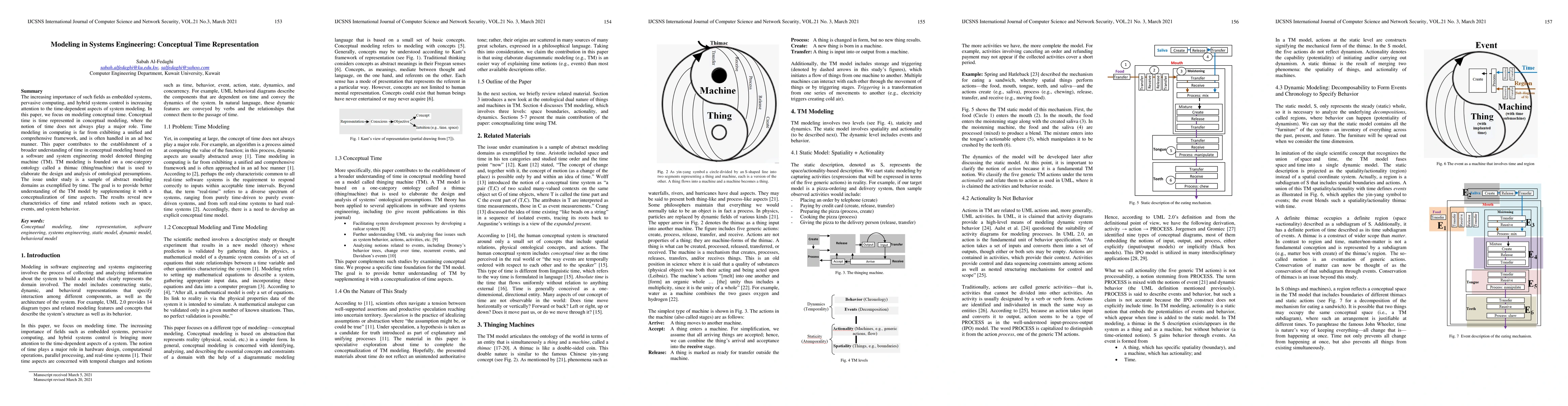 This paper introduces a conceptual time representation within systems engineering, focusing on the thinging machine (TM) model to elaborate on the design and analysis of ontological presumptions. It aims to establish a unified framework for conceptual time modeling, revealing new characteristics of time, space, events, and system behavior.