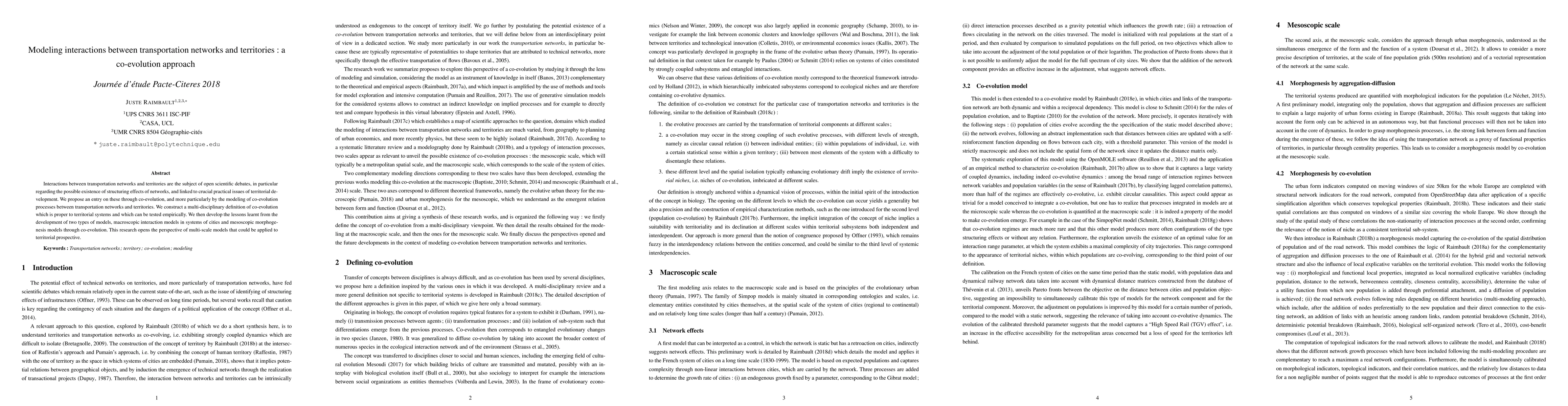 This paper proposes a co-evolution approach to model the interactions between transportation networks and territories, aiming to understand the structuring effects of networks on territorial development. It develops multi-disciplinary co-evolution models tested empirically and explores macroscopic and mesoscopic models for future territorial planning.