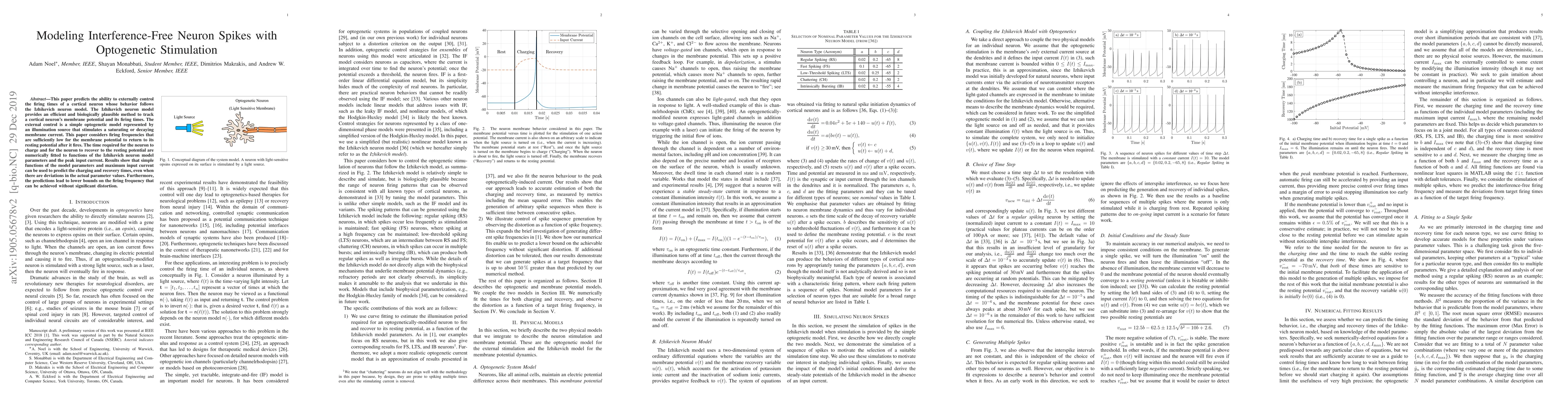 This paper models the precise control of cortical neuron firing times using optogenetic stimulation, demonstrating that simple functions of neuron model parameters and peak input current can predict charging and recovery times, enabling interference-free neuron spike control at low firing frequencies.