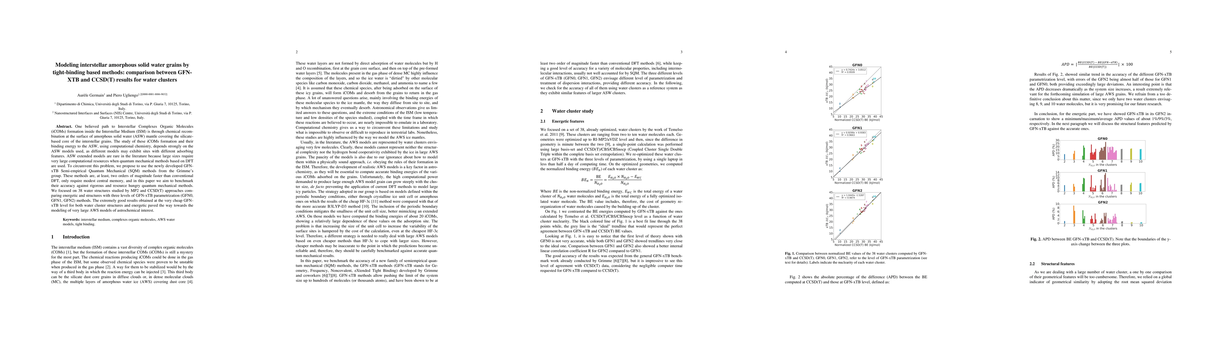 This research compares the accuracy of the computationally efficient GFN-xTB method with the rigorous CCSD(T) method for modeling amorphous solid water (ASW) grains using water clusters. The study found GFN-xTB to be surprisingly accurate and much faster, paving the way for larger, astrochemically relevant ASW models.