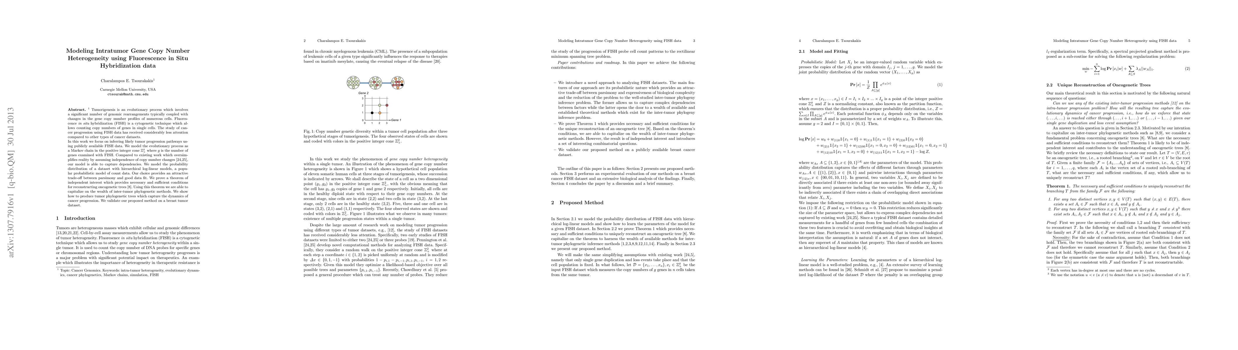 Researchers developed a method to analyze gene copy number heterogeneity in tumors using fluorescence in situ hybridization data, allowing for the reconstruction of cancer progression pathways. The approach uses hierarchical log-linear models to capture dependencies between genetic changes and produces tumor phylogenetic trees that reveal dynamics of cancer evolution.