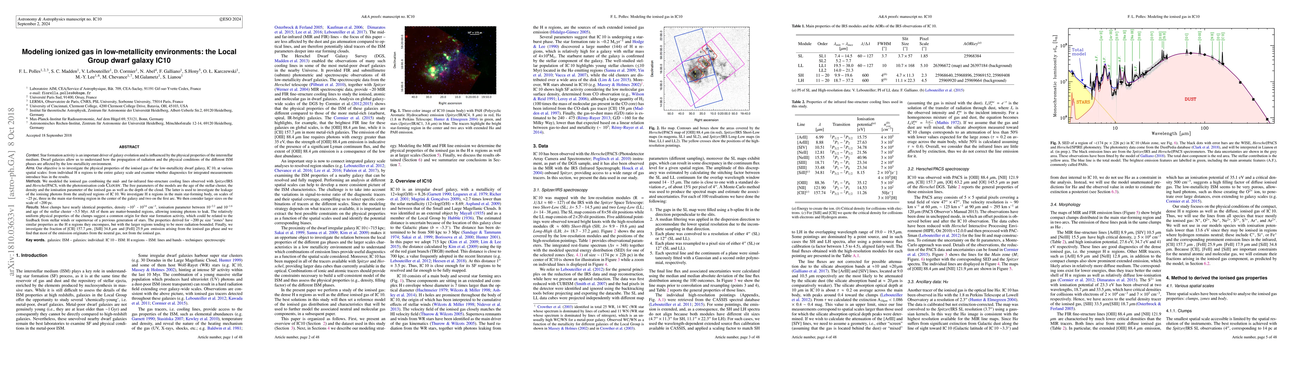 Our objective is to investigate the physical properties of the ionised gas of the low-metallicity dwarf galaxy, IC 10, at various spatial scales: from individual HII regions to the entire galaxy scale and examine whether diagnostics for integrated measurements introduce bias in the results. We modeled the ionised gas combining the mid- and far-infrared fine-structure cooling lines observed with Spitzer/IRS and Herschel/PACS, with the photoionisation code Cloudy. The free parameters of the models are the age of the stellar cluster, the density and the ionisation parameter of the ionised gas as well as the depth of the cloud. The latter is used to investigate the leakage of the ionising photons from the analysed regions of IC 10. We investigate HII regions in the main star-forming body, on scales of ~25 pc, three in the main star-forming region in the center of the galaxy and two on the first arc. We then consider larger sizes on the scale of ~200 pc. We find that most clumps have nearly identical properties, density ~10$^{2.} $ - 10$^{2.6}$ cm$^{-3}$, ionisation parameter between 10$^{-2.2}$ and 10$^{-1.6}$ and age of the stellar cluster ~5.5 Myr. All of them are matter-bounded regions, allowing ionising photons to leak. The relatively uniform physical properties of the clumps suggest a common origin for their star formation activity, which could be related to the feedback from stellar winds or supernovae of a previous generation of stars. The properties derived for ~200 pc size "zones" have similar properties as the HII regions they encompass, but with the larger regions tending to be more radiation-bounded. Finally, we investigate the fraction of [CII] 157.7 {\mu}m, [SiII] 34.8 {\mu}m, and [FeII] 25.9 {\mu}m, emission arising from the ionised gas phase and we find that most of the emission originates from the neutral gas, not from the ionised gas.
