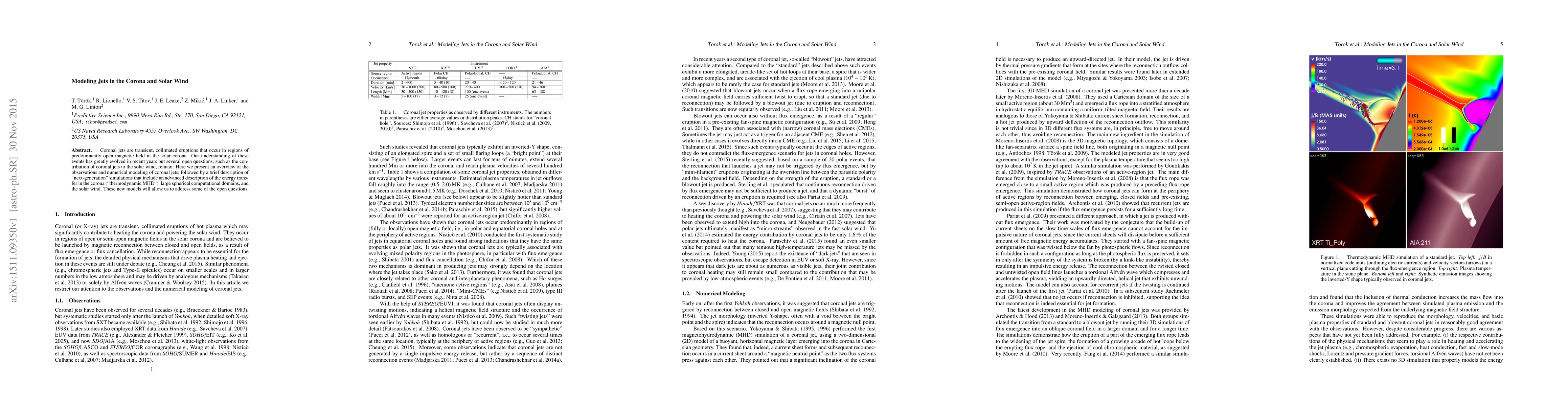 This paper reviews observations and numerical models of coronal jets, focusing on their contribution to the solar wind. It introduces advanced "next-generation" simulations incorporating thermodynamic magnetohydrodynamics and large computational domains to better understand energy transfer and jet dynamics.