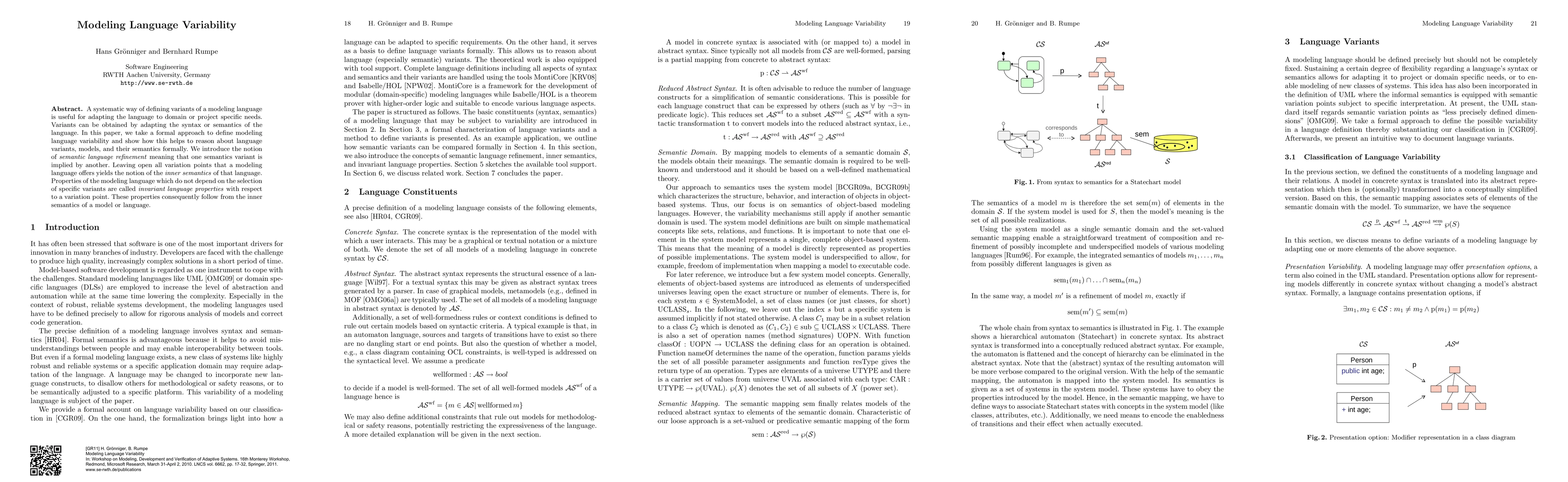 A systematic way of defining variants of a modeling language is useful for adapting the language to domain or project specific needs. Variants can be obtained by adapting the syntax or semantics of the language. In this paper, we take a formal approach to define modeling language variability and show how this helps to reason about language variants, models, and their semantics formally. We introduce the notion of semantic language refinement meaning that one semantics variant is implied by another. Leaving open all variation points that a modeling language offers yields the notion of the inner semantics of that language. Properties of the modeling language which do not depend on the selection of specific variants are called invariant language properties with respect to a variation point. These properties consequently follow from the inner semantics of a model or language.