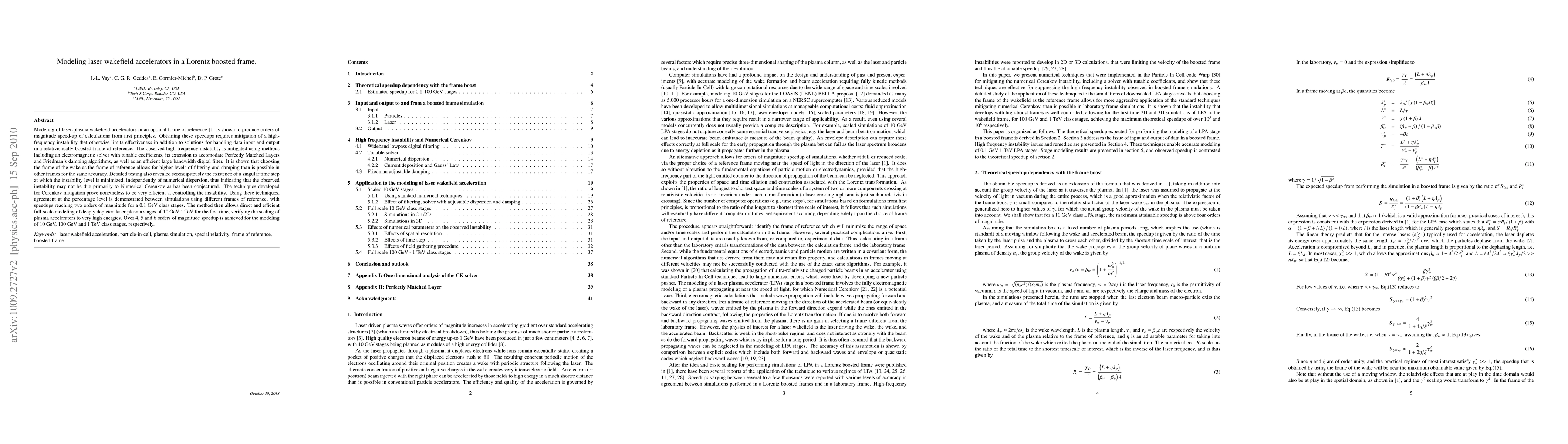 This paper presents a method for modeling laser wakefield accelerators in a Lorentz boosted frame, achieving significant speedups by mitigating high-frequency instabilities and optimizing data handling. Techniques like tunable electromagnetic solvers and digital filters enable efficient simulations, demonstrating agreement between different reference frames and enabling full-scale modeling of high-energy plasma accelerators.