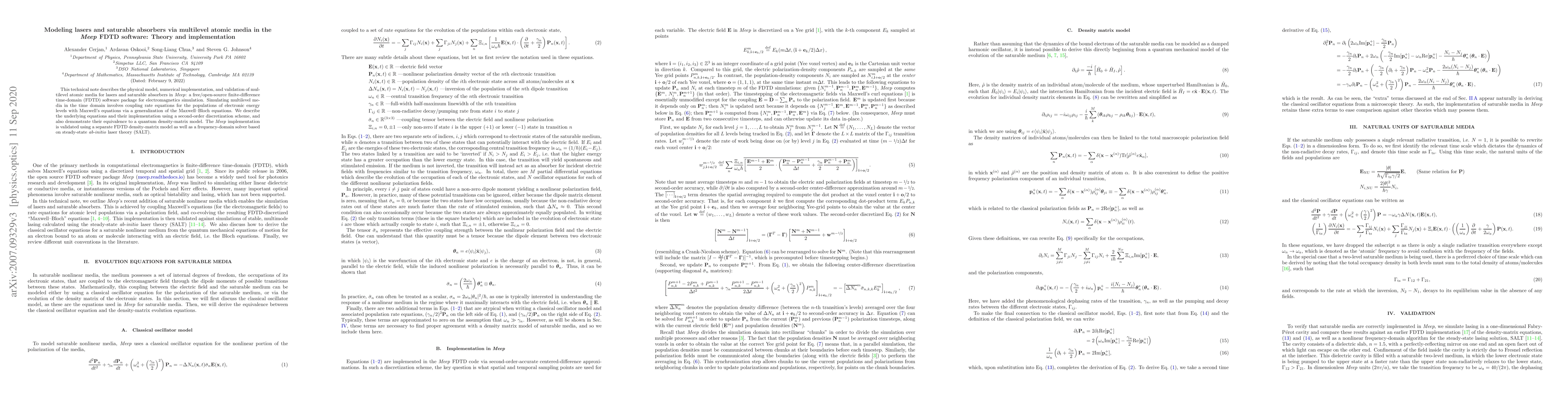 This paper presents a theoretical and practical approach to modeling lasers and saturable absorbers using multilevel atomic media in the Meep FDTD software, involving the coupling of rate equations for electronic energy levels with Maxwell's equations through generalized Maxwell-Bloch equations. The implementation and validation are demonstrated against a separate FDTD density-matrix model and a frequency-domain solver.