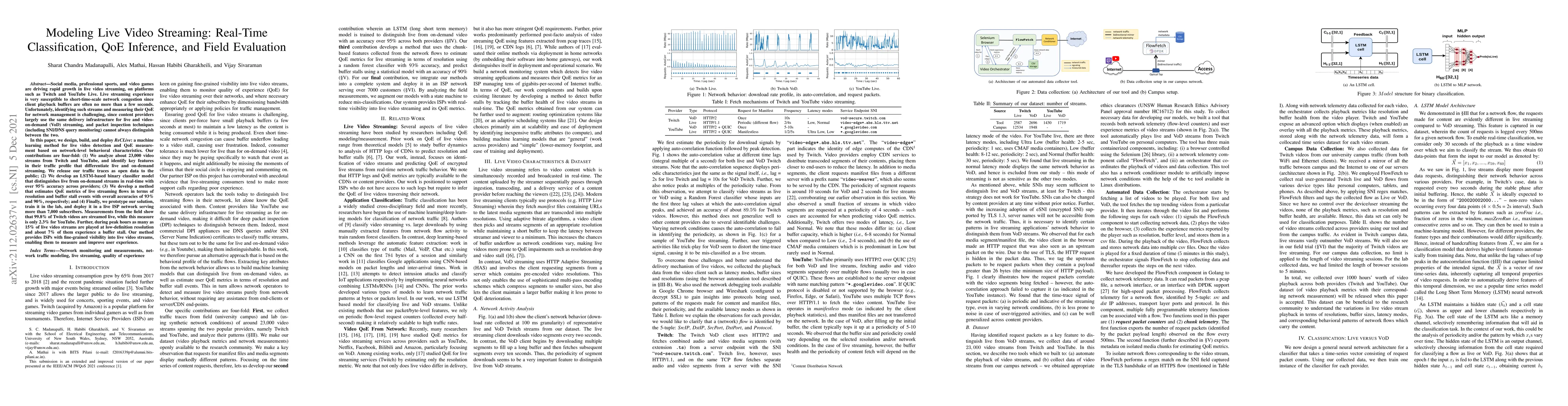 This paper introduces ReCLive, a machine learning method for real-time classification of live video streams and QoE inference based on network behavior. It distinguishes live streams from on-demand with high accuracy and estimates QoE metrics for live streams, deployed in a live ISP network to enhance user experience.