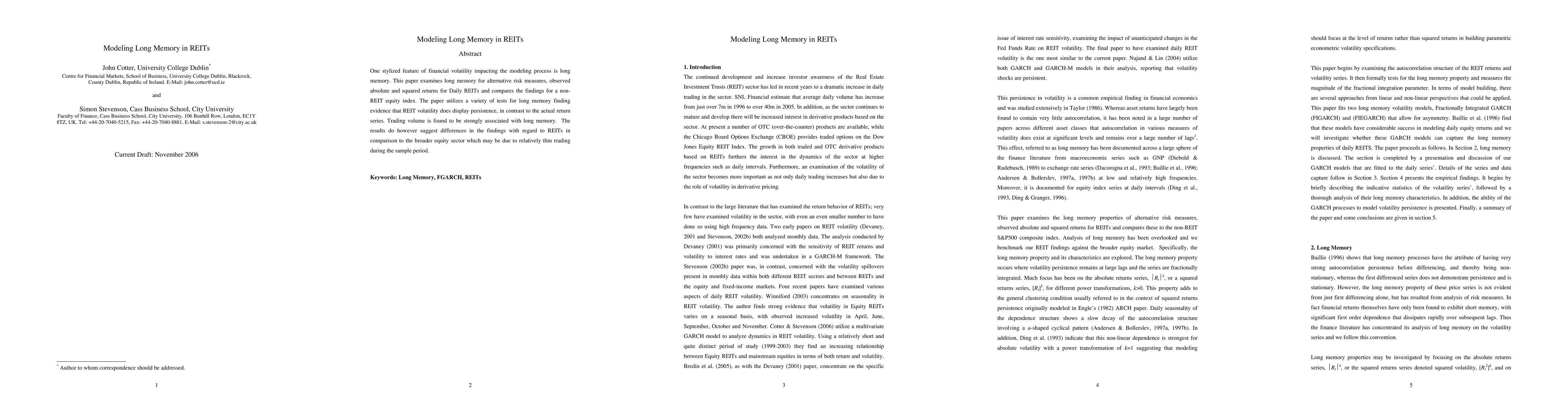 This paper finds that REIT volatility exhibits long memory, contrary to actual return series, with strong associations between trading volume and long memory. The findings differ from those of a broader equity index due to relatively thin trading during the sample period.