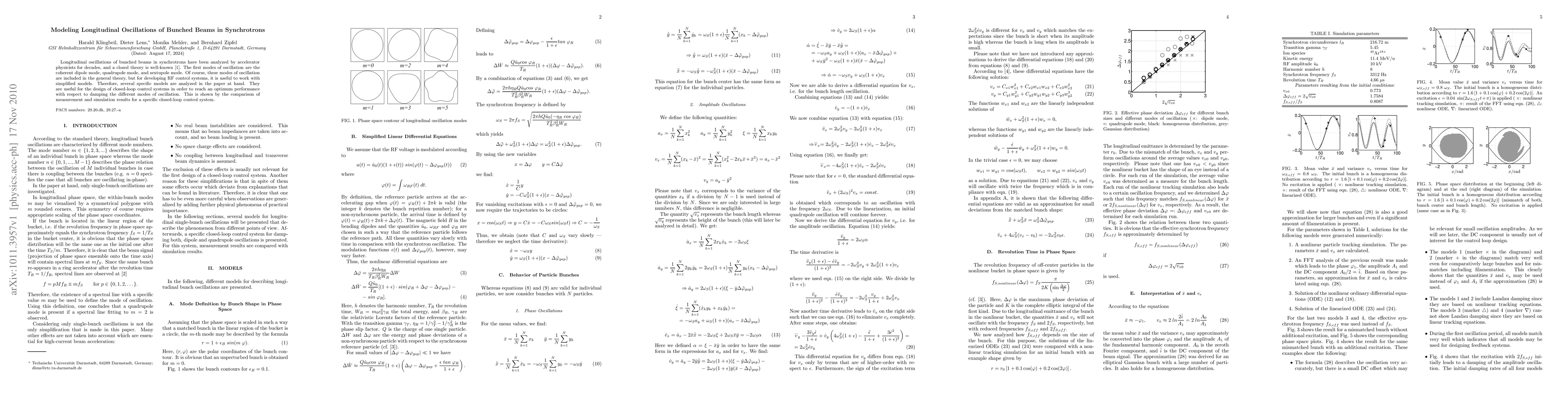 Longitudinal oscillations of bunched beams in synchrotrons have been analyzed by accelerator physicists for decades, and a closed theory is well-known [1]. The first modes of oscillation are the coherent dipole mode, quadrupole mode, and sextupole mode. Of course, these modes of oscillation are included in the general theory, but for developing RF control systems, it is useful to work with simplified models. Therefore, several specific models are analyzed in the paper at hand. They are useful for the design of closed-loop control systems in order to reach an optimum performance with respect to damping the different modes of oscillation. This is shown by the comparison of measurement and simulation results for a specific closed-loop control system.