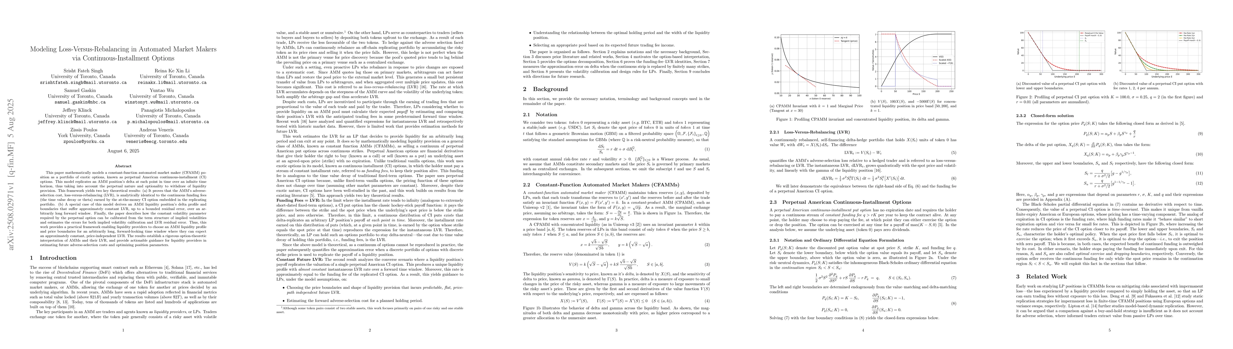 This paper mathematically models a constant-function automated market maker (CFAMM) position as a portfolio of exotic options, known as perpetual American continuous-installment (CI) options. This model replicates an AMM position's delta at each point in time over an infinite time horizon, thus taking into account the perpetual nature and optionality to withdraw of liquidity provision. This framework yields two key theoretical results: (a) It proves that the AMM's adverse-selection cost, loss-versus-rebalancing (LVR), is analytically identical to the continuous funding fees (the time value decay or theta) earned by the at-the-money CI option embedded in the replicating portfolio. (b) A special case of this model derives an AMM liquidity position's delta profile and boundaries that suffer approximately constant LVR, up to a bounded residual error, over an arbitrarily long forward window. Finally, the paper describes how the constant volatility parameter required by the perpetual option can be calibrated from the term structure of implied volatilities and estimates the errors for both implied volatility calibration and LVR residual error. Thus, this work provides a practical framework enabling liquidity providers to choose an AMM liquidity profile and price boundaries for an arbitrarily long, forward-looking time window where they can expect an approximately constant, price-independent LVR. The results establish a rigorous option-theoretic interpretation of AMMs and their LVR, and provide actionable guidance for liquidity providers in estimating future adverse-selection costs and optimizing position parameters.